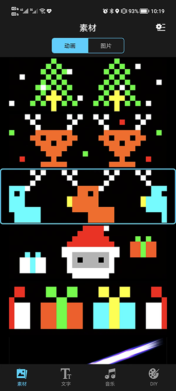 这款APP的设计公司会在后台更新素材内容,其中包含大量用于LED显示的图案素材、动画模板以及音乐等。对于推送到LED上的内容,用户能够自行设定文字、图案、颜色等,还可以在涂鸦画板上自由创作(DIY),然后将创作内容上传至LED显示屏。