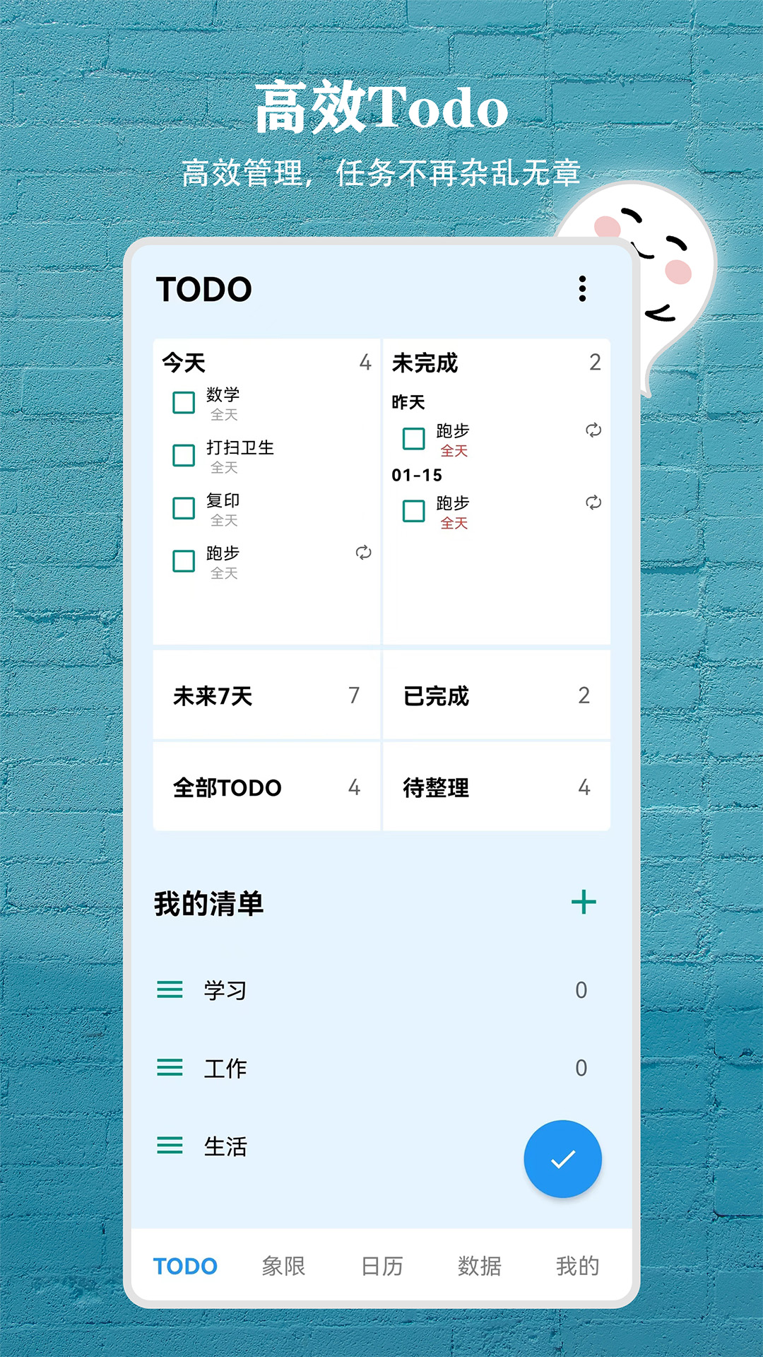 清单、四象限和日历等多种分类方式,任务不再杂乱无章。