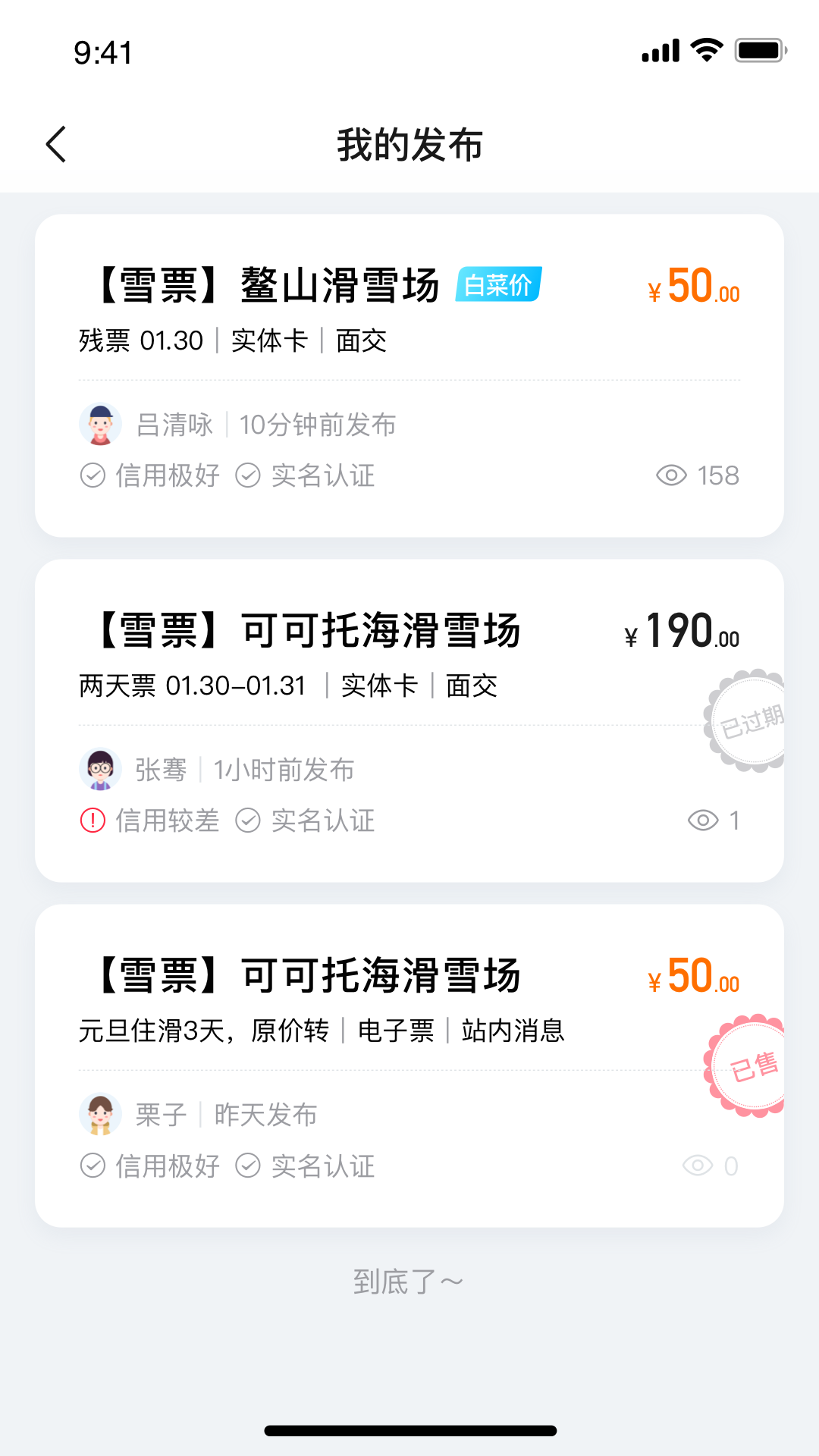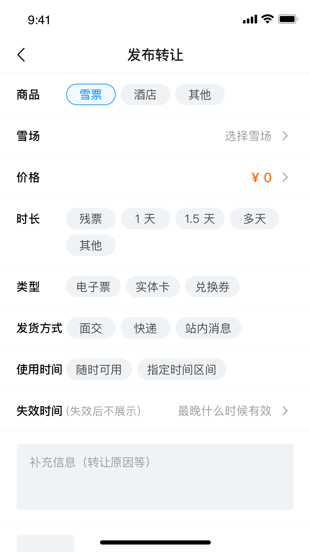 - 在这个平台上,您要是有多余不用的雪票或者酒店预订,就可以通过它快速转让给其他有需求的雪友。