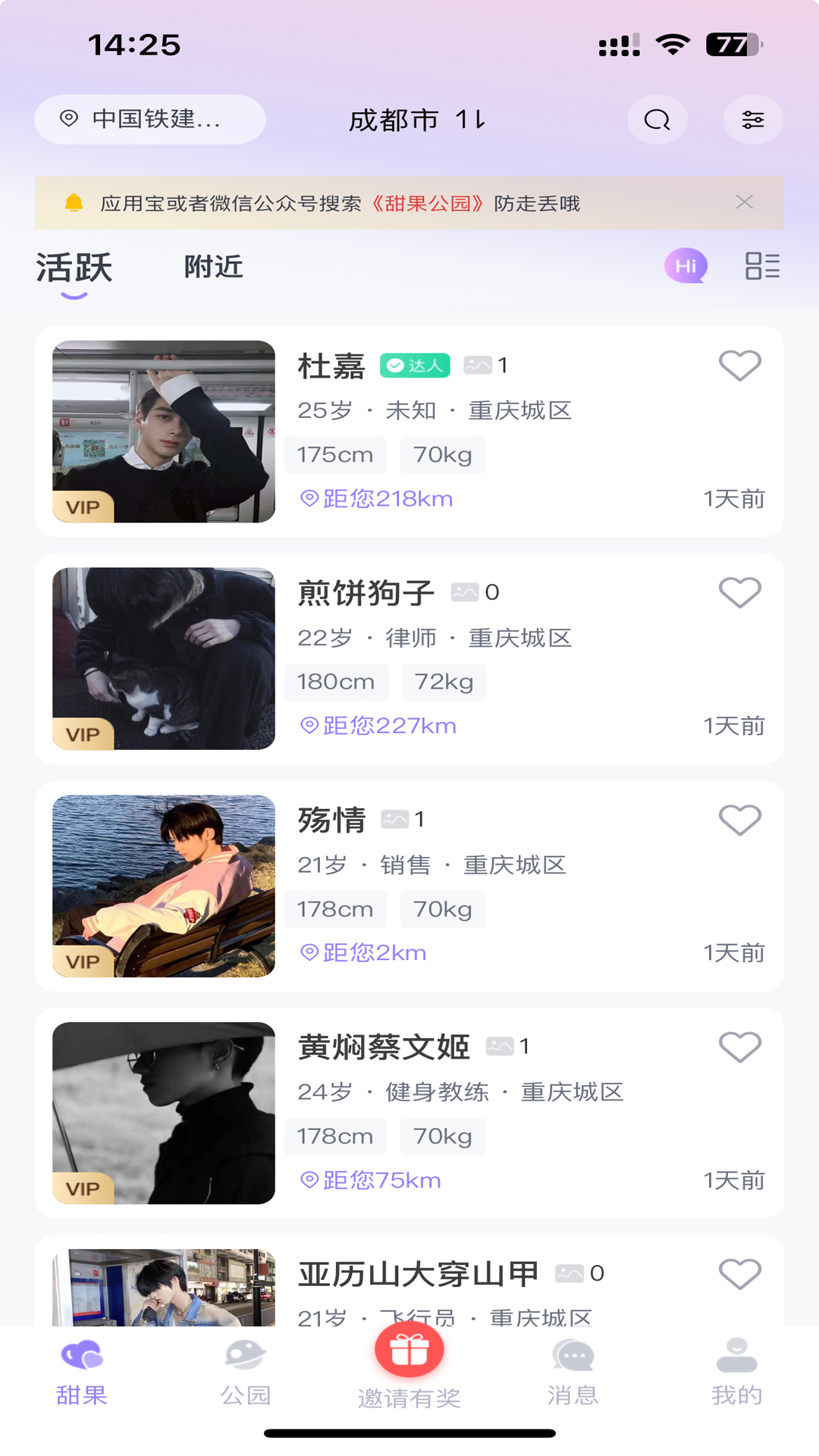 甜果公园,是一款备受年轻人青睐的社交交友APP。在这个平台上,你能够寻觅到心仪的对象,也可以找到能倾诉心声的伙伴。这款APP以推动健康、真实的社交为宗旨。其主要功能涵盖附近交友、公园场景以及即时消息等。