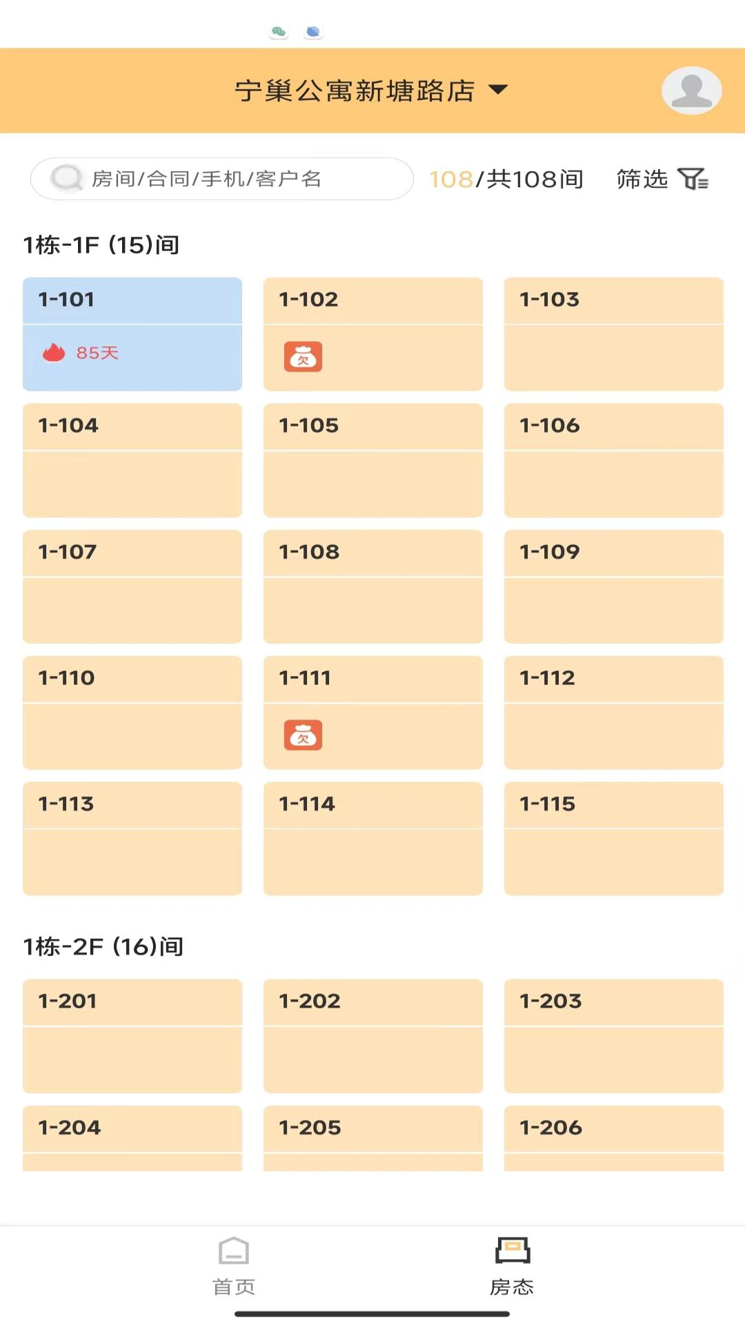 1、可快速查看门店所有房态信息,比如已签约房间租约信息,占用房间占用原因等。