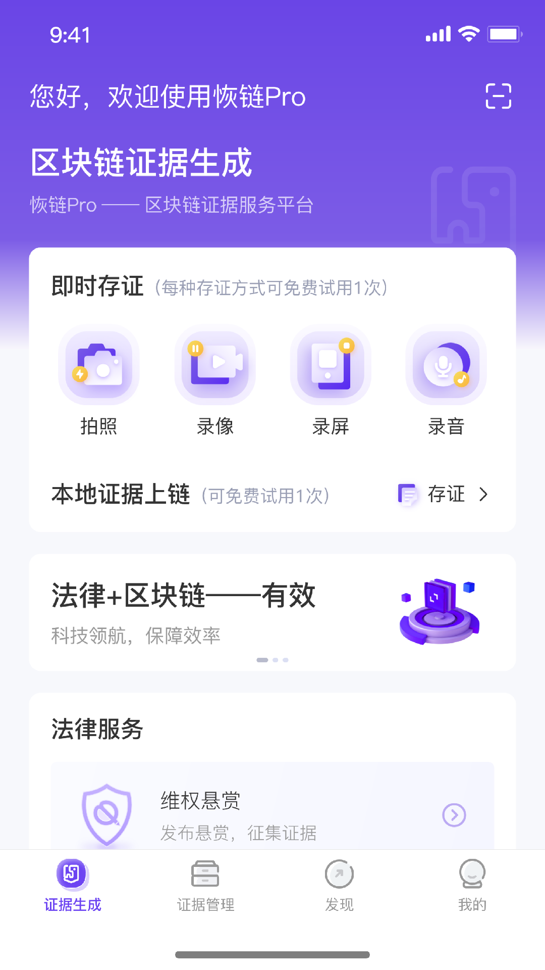 恢链是一款基于区块链技术的电子证据服务平台,可提供全方位的证据收集和管理服务。用户可将证据存储在恢链上,保证其安全可靠、极难篡改。 平台结合律师行业特征开发,可为用户提供安全、高效、可信的证据管理服务,帮助用户维护自己的合法权益。