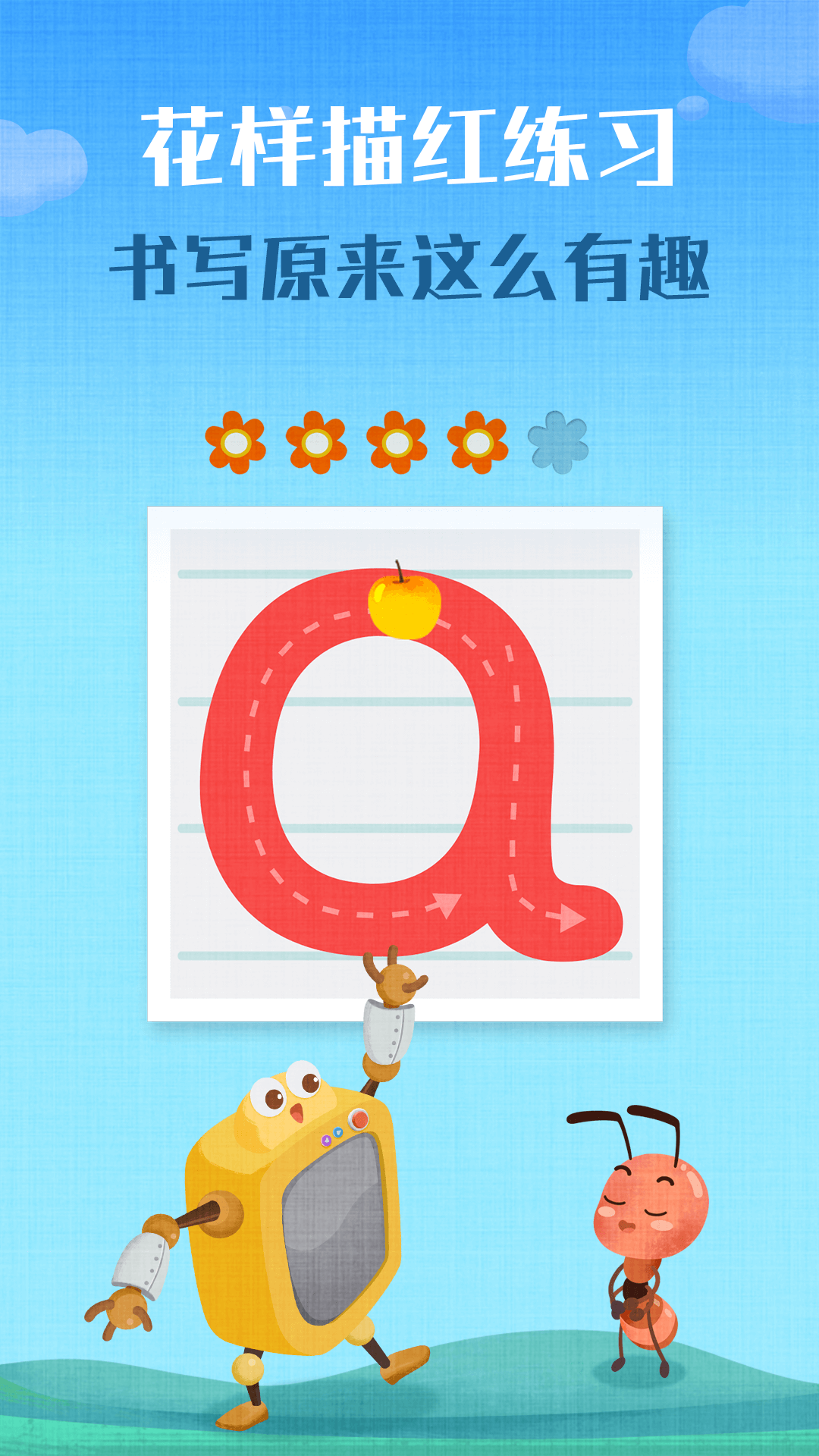 「描红」演示、练习、反馈、巩固一体化,加上字母回放功能,让孩子体验书写的乐趣!