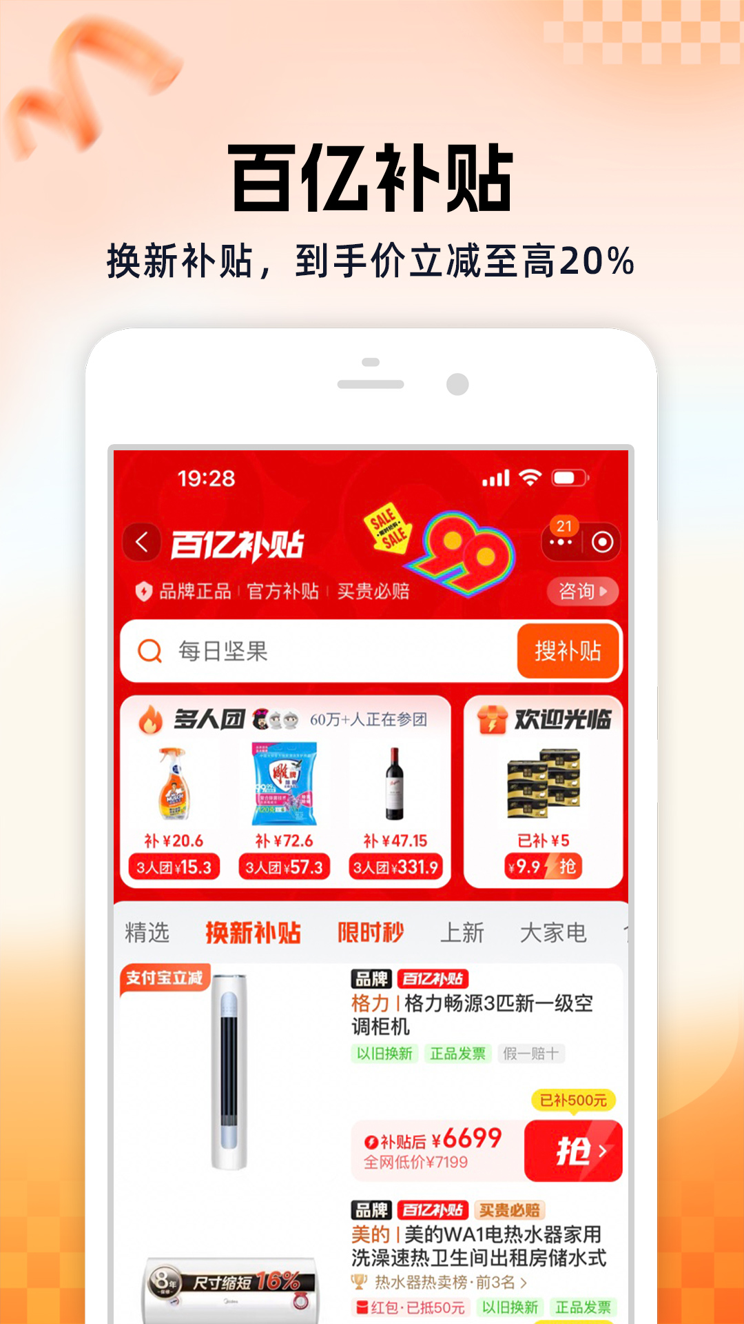 ● 淘宝秒杀:全网低价限时抢,爆款直降享福利 ● 百亿补贴:换新补贴,到手价立减至高20% ● 淘宝搜索:趋势新品,品质好货,一搜即得 ● 88vip:购物优惠享不停,海量会员特权等你来 ● 逛出惊喜:好物应有尽有,精选不停歇