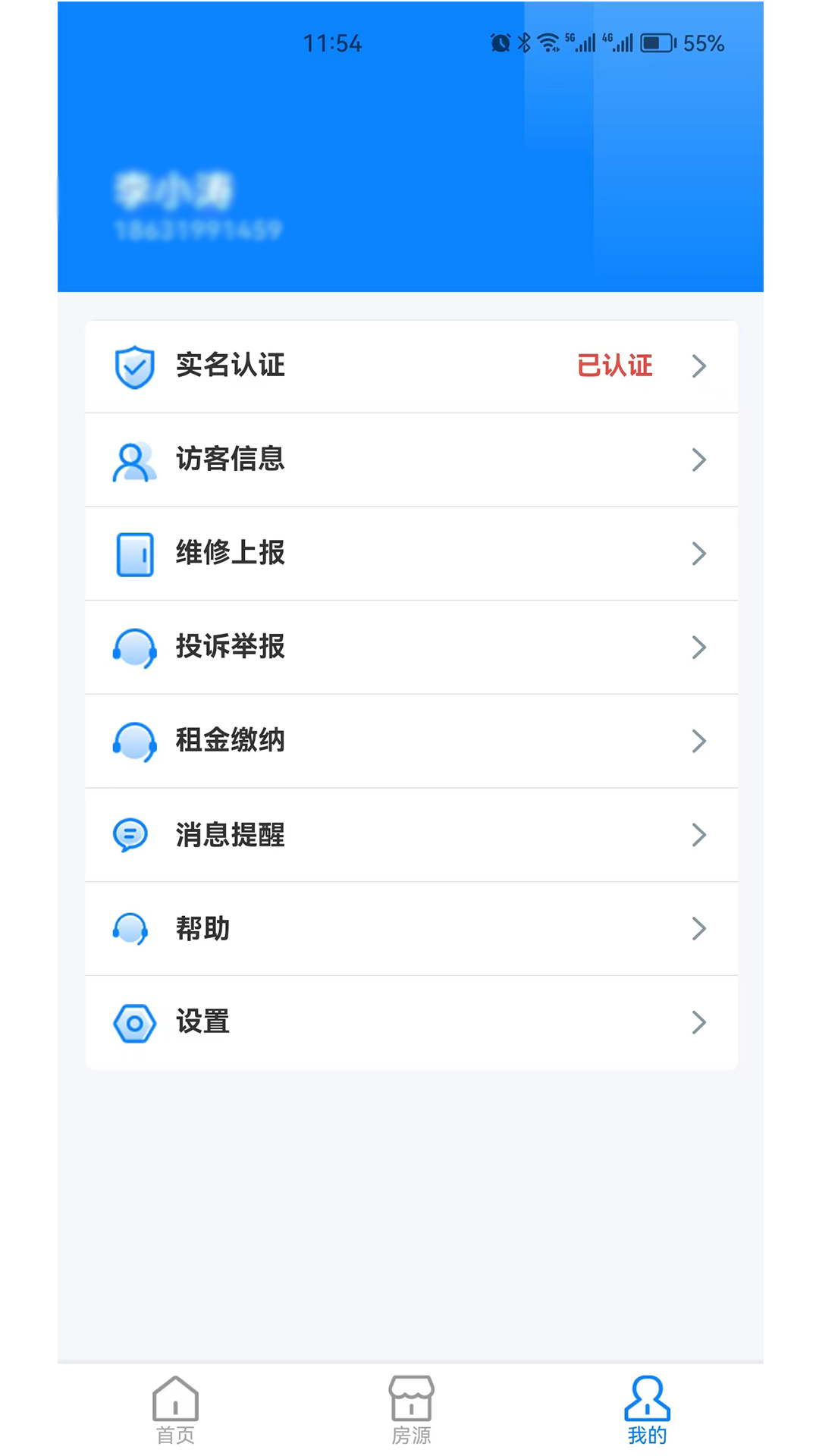 实名认证、访客信息、维修上报、投诉举报、租金缴纳、消息提醒、帮助等功能