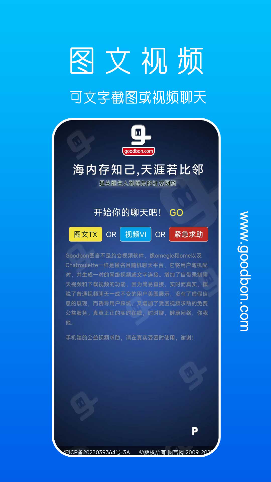 goodbon cat不是约会视频软件,是匿名且随机聊天app,它将用户随机配对,并生成一对的网络视频或文字连接。增加了自带录制聊天视频和下载视频的功能,方便后期剪切编辑而无需安装第三方软件来录制。因为简易直接,实时而真实,摆脱了普通视频聊天一成不变的用户美图展示,没有了虚假信息的展现,而诱导用户踩坑。又有监督举报信息,后台黑名单处理,真真正正的实时在线,时时聊,随机匹配文明聊天,健康网络,你我他。