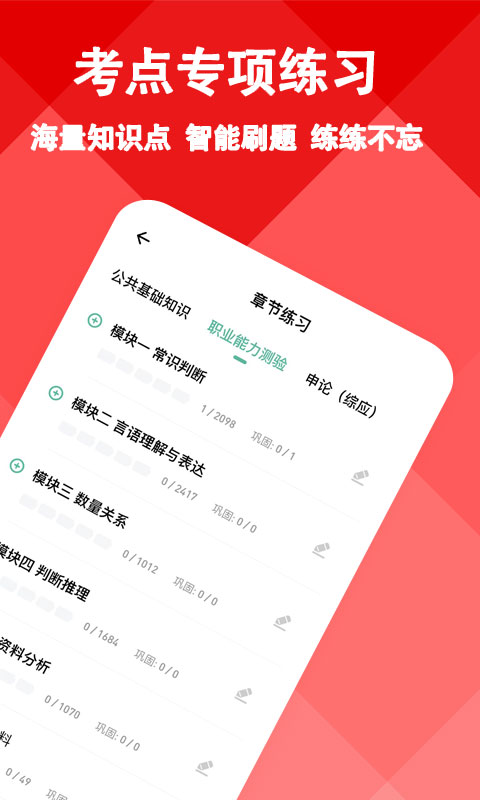 【章节练习】每个科目单独设立章节题库,刷题轻松简单,有效节省复习时间。