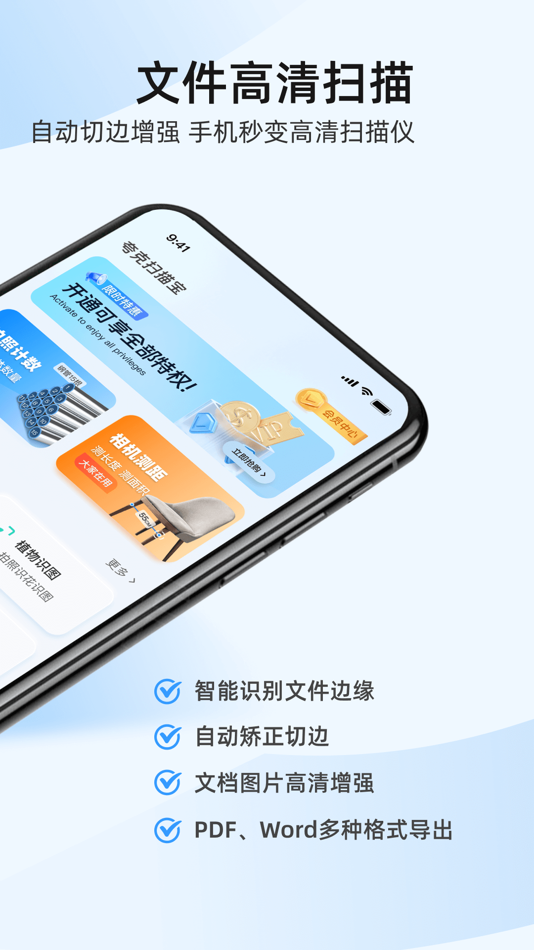 除此之外,夸克扫描宝还有许多有趣又实用的功能,像拍摄证件照、扫描计数、拍照测高以及动植物识别等功能它都具备。有了夸克扫描宝,无论是工作还是生活,都能变得更加轻松高效,为您带来极大的便利。
