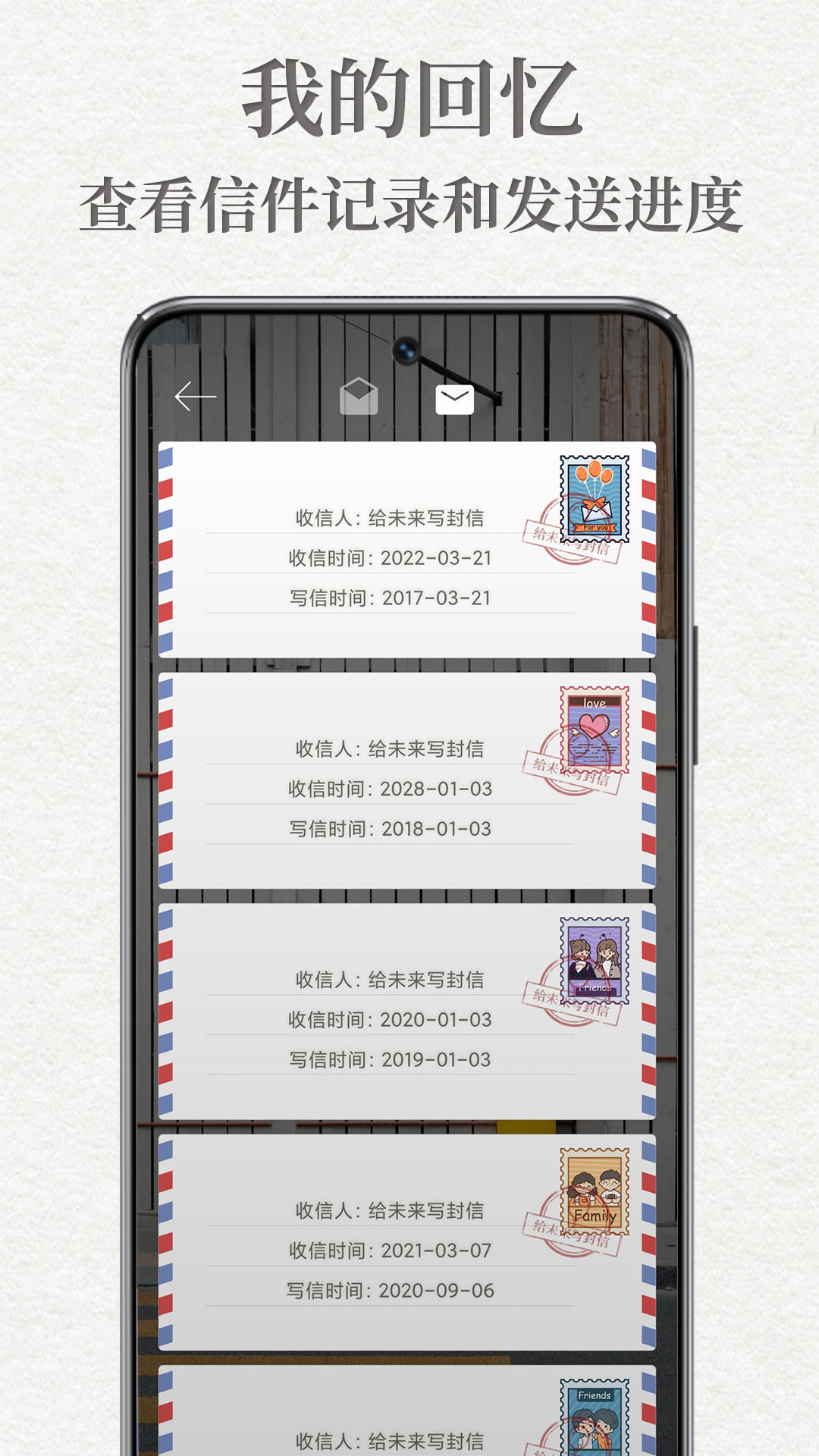 - 给自己未来写信,这既是对未来满满的期许与憧憬,也是对当下生活深入的思考。你能够跨越不同的时期,突破不同的心境,与自己展开一场穿越时空的真情对话。