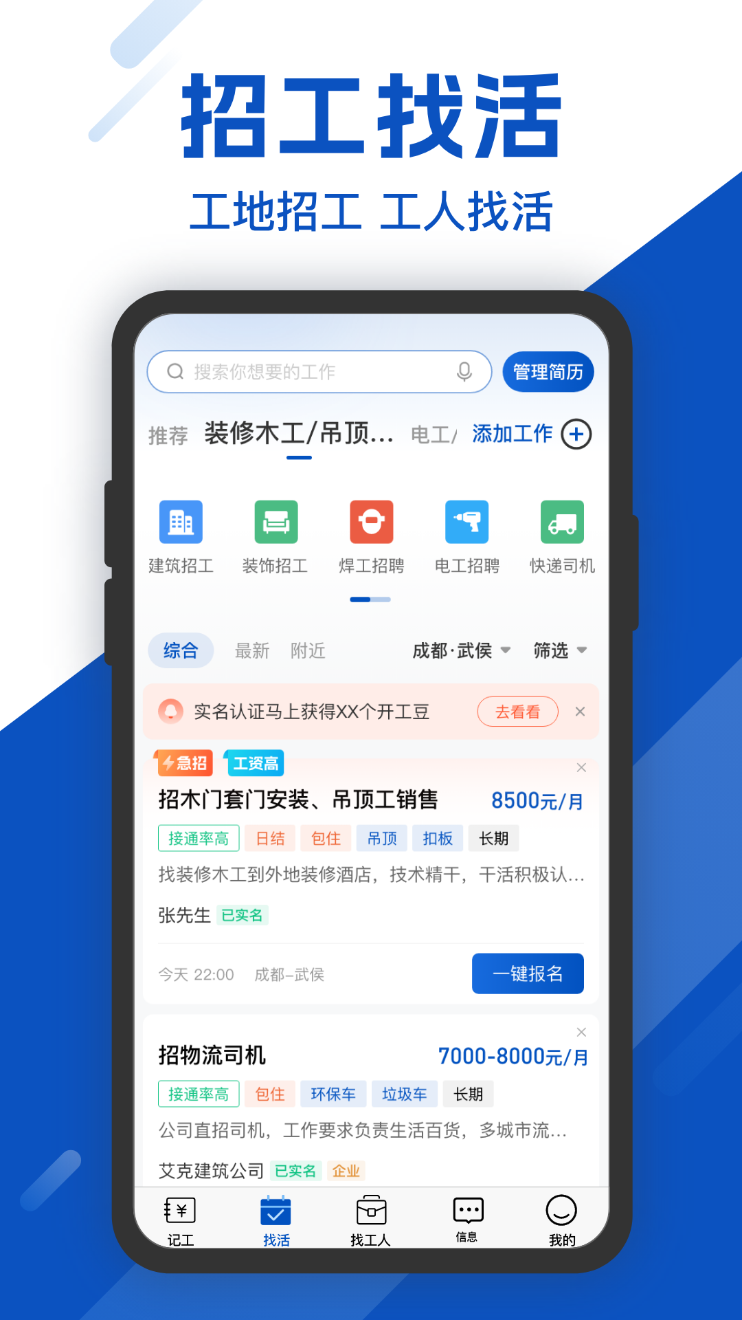 让建筑工友真实体验工地办工高效、记工天记工时方便、工地考勤轻松;