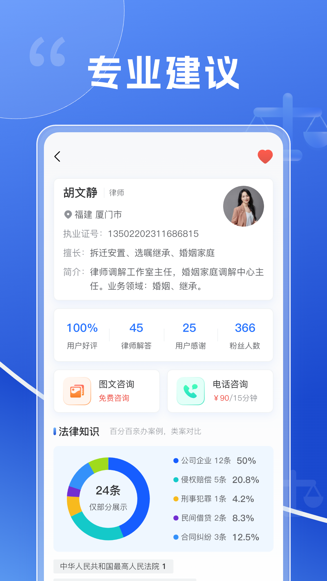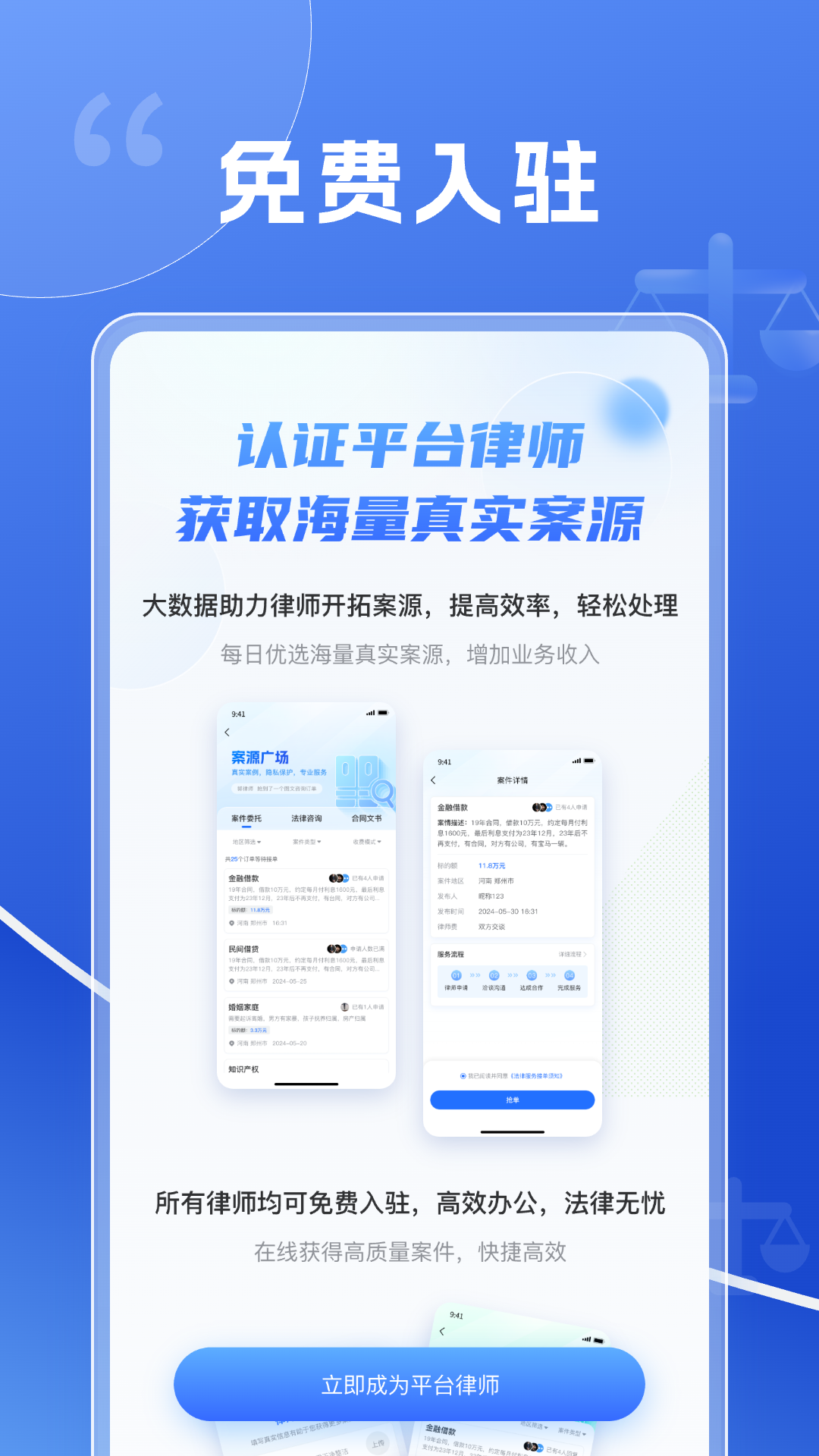 这款应用有着操作简单、界面亲和友好的特点。用户能够依据自身的需求,迅速筛选出在相应领域擅长的律师。借助在线咨询这种方式,及时得到专业的法律解答与建议。律师们会运用自身丰富的经验和专业的知识,为你剖析问题,提供解决问题的办法,从而使你在错综复杂的法律迷宫里找到前行的正确方向。