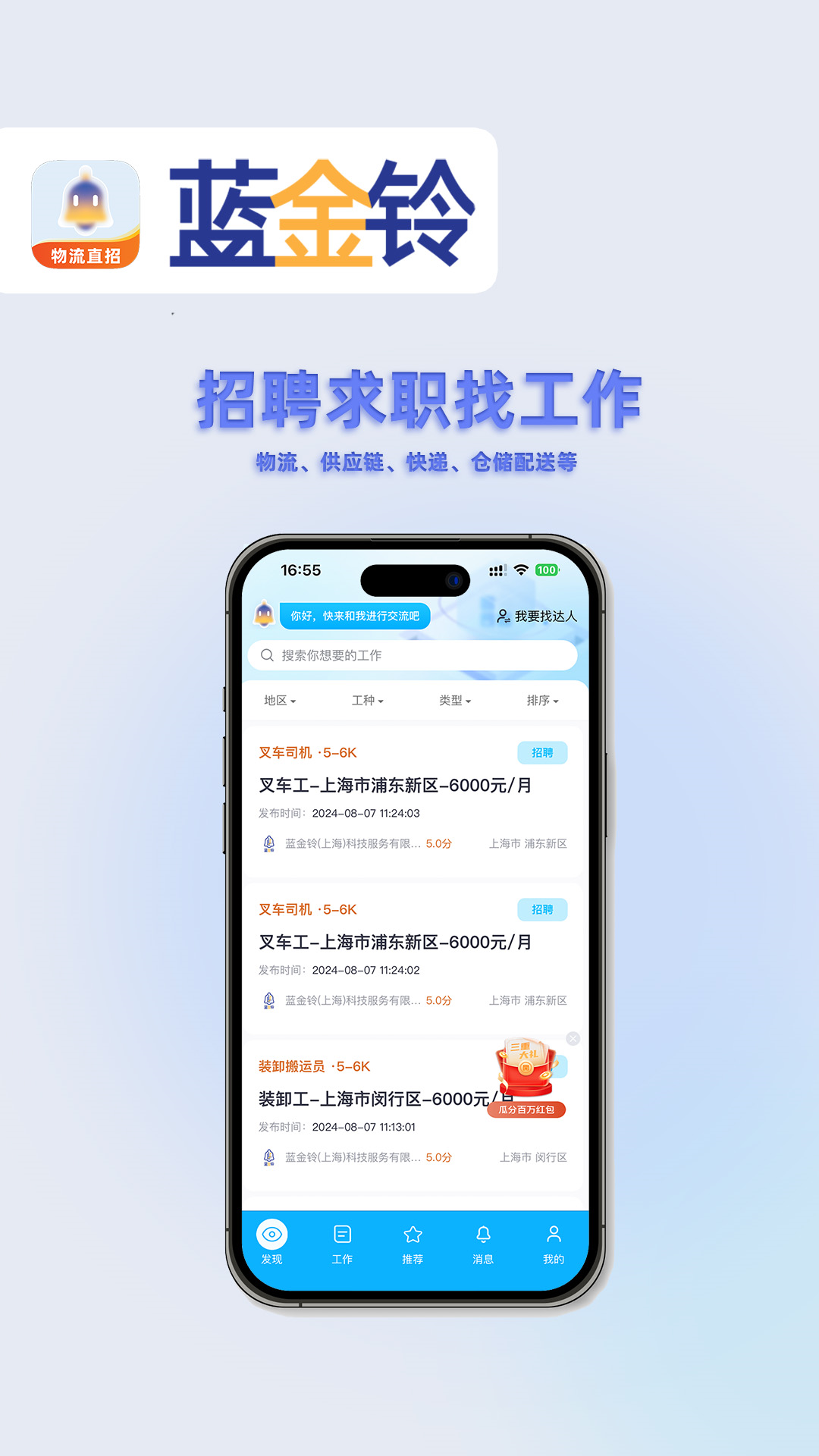 蓝金铃,一个专注于物流行业蓝领招聘求职的平台。在这里,求职者能够获取海量的招聘职位,无论是长期工、短期工、零工还是外包岗位应有尽有;而物流企业则可得到心仪人才的简历,并且能够享受到服务外包、设备租赁、灵活用工以及零工整包等服务。该平台的服务覆盖物流、供应链、快递等行业,遍及全国31个省市。每天都有数量达上百万的企业直接在线招聘,同时也有上千万的求职者在线寻找工作。