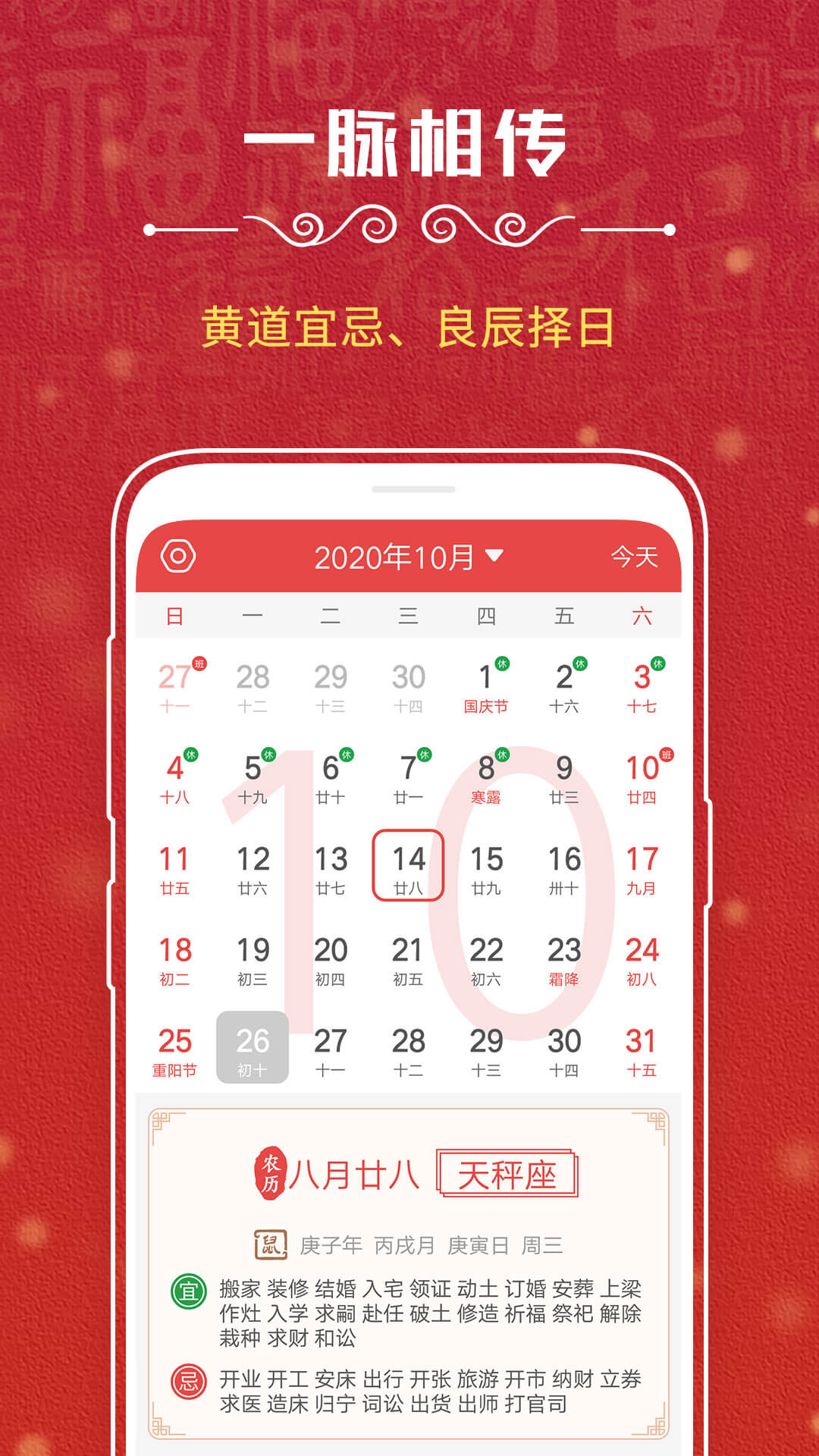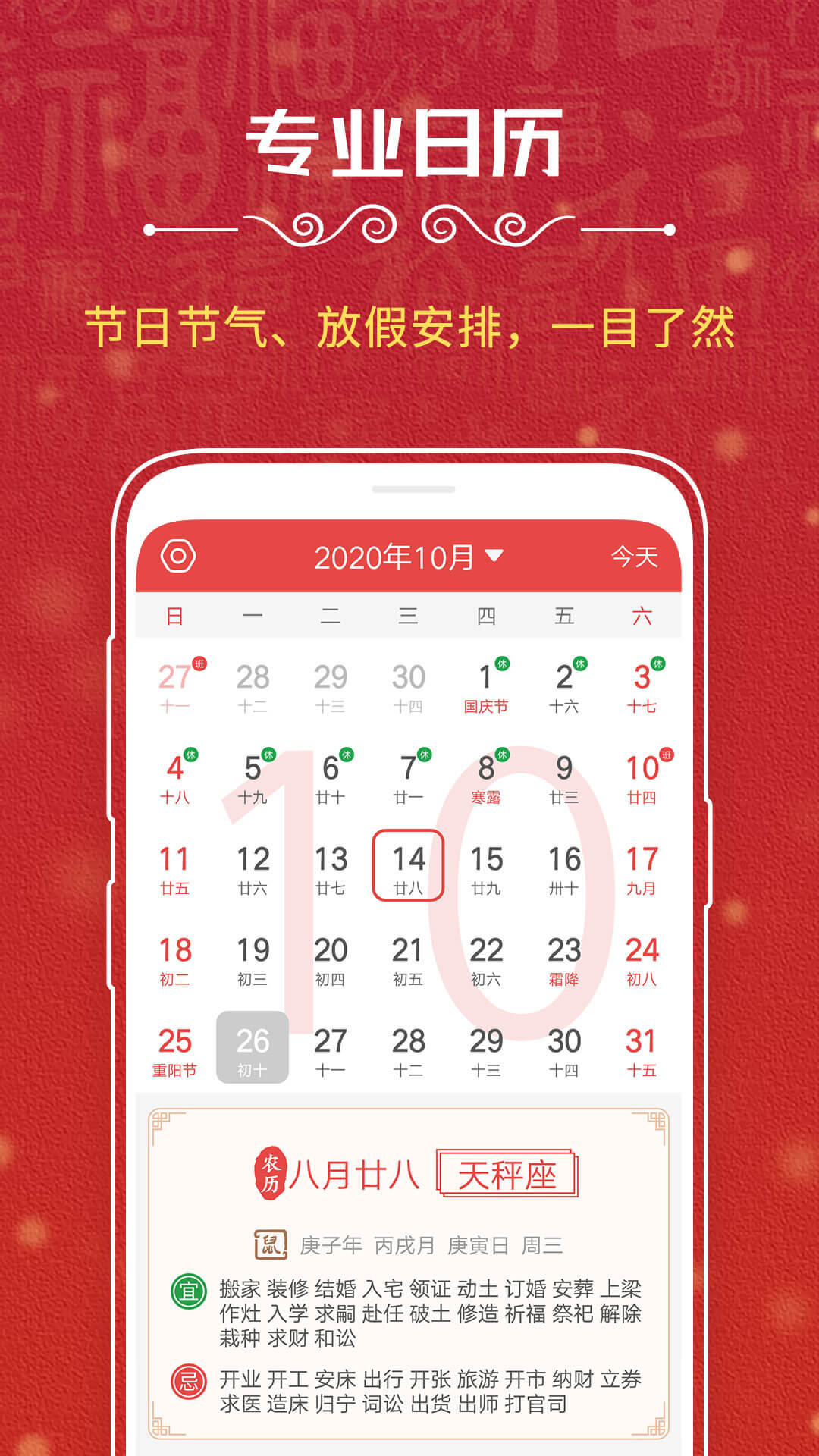 ②其界面简洁,没有冗余的设计,并且凸显中国风,致力于打造优质且准确的中国日历万年历。