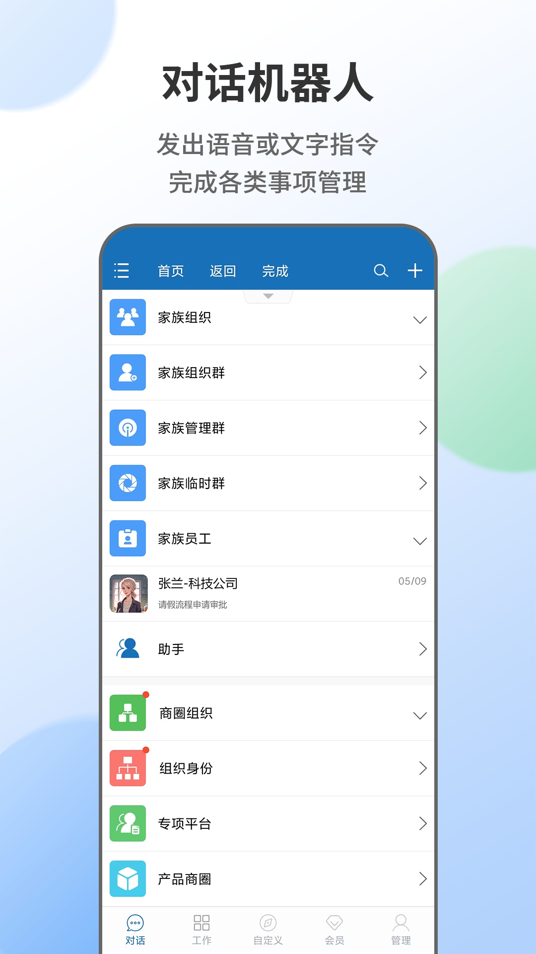 b. 智能管理系统—管理端 通过我的共享工作与共享世界、组织管理、对话机器人、智能管理、运营管理、数字财富、系统配置以及可视化语言编程,和他人建立数据共享关系。通过商圈组织、家族组织、下级组织,利用聊天对话、同屏互动,达成办公管理、工厂管理、生活管理等目的,体验元宇宙时代犹如分身般的生活,确定自己的数据资产所有权,拥有自己的数字货币账户。