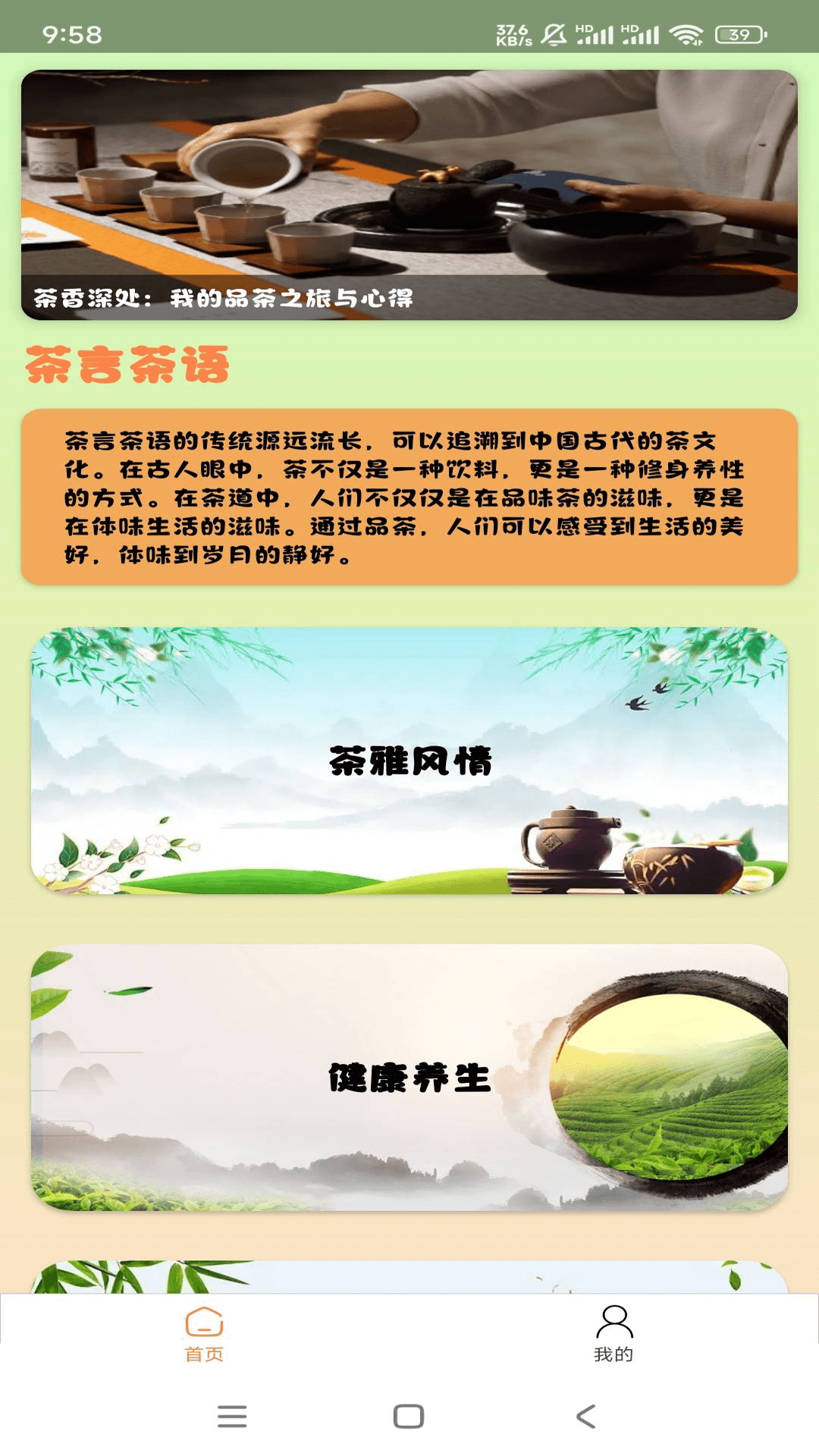 茶言茶语是一款专为茶文化爱好者打造的应用,汇聚了茶叶知识、养生分享以及茶文化传承的精髓。让您在品味茶香的同时,也能领略到茶文化的博大精深。