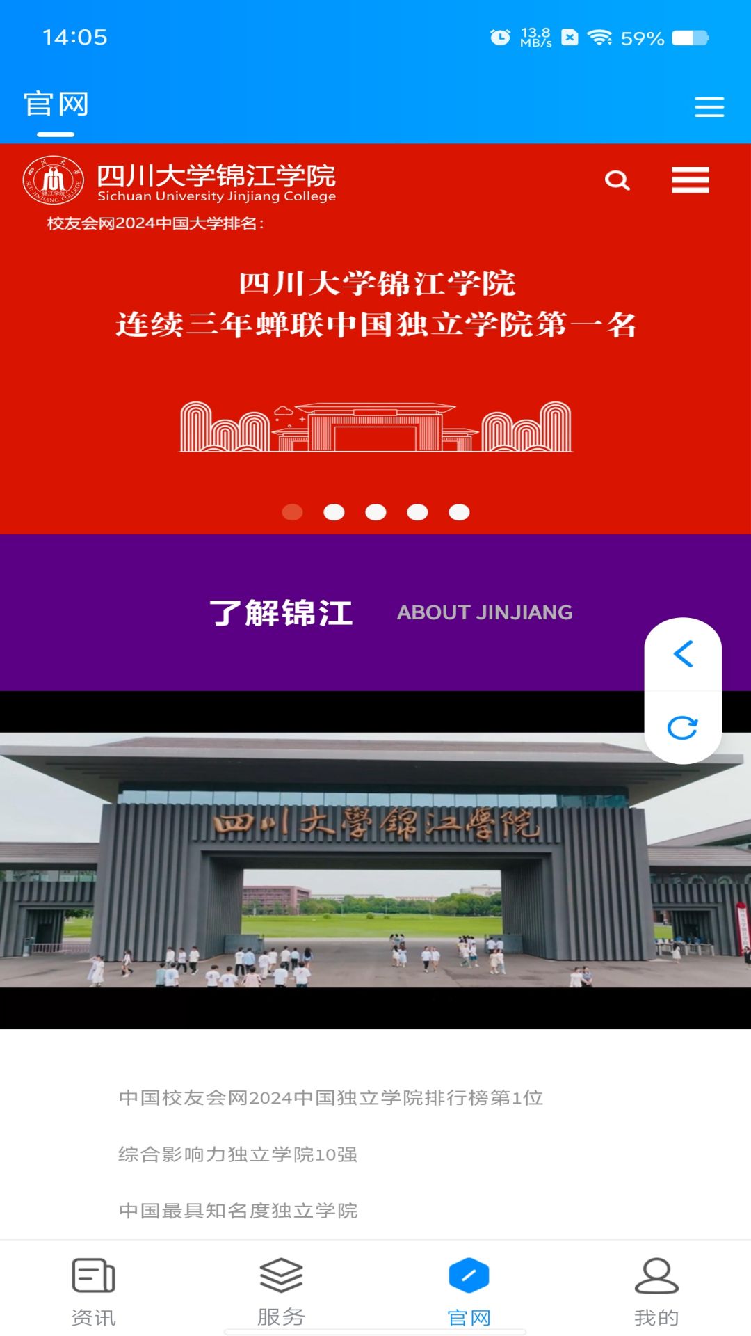锦江微服务是四川大学锦江学院为全校师生打造的移动智慧校园平台。锦江微服务APP通过先进技术和多平台有效融合的模式,对师生所需要的服务进行持续建设和完善,覆盖管理、工作、学习、生活等多个场景,为领导、师生营造一个科学决策、管理透明、工作高效、学术氛围浓厚、生活服务便利的一体化智慧校园。