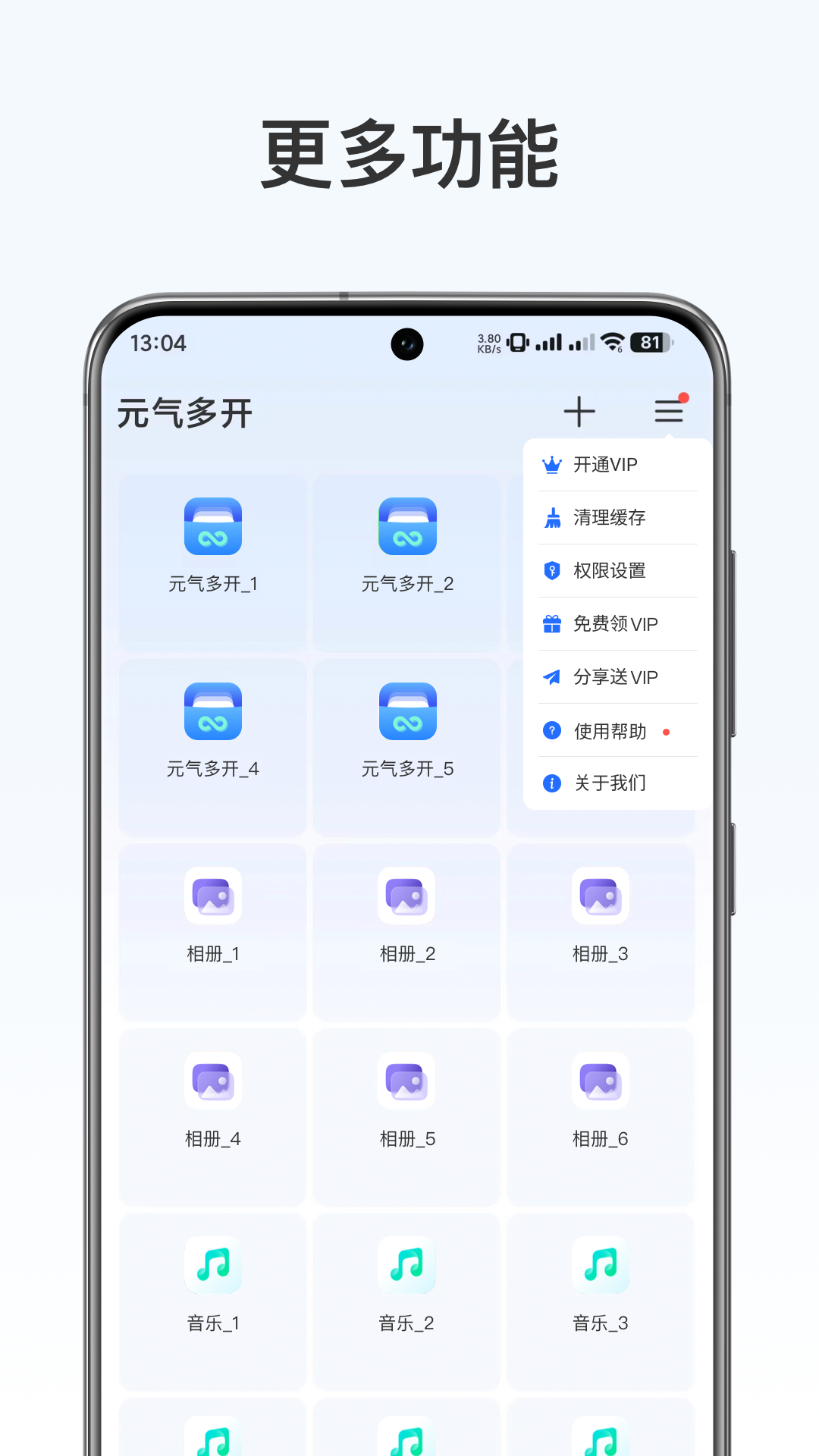 2. 它支持大量应用的分身,不管是社交类还是游戏类。像刚刚提到的那些应用分身,不仅使用方便,而且体验感超棒。