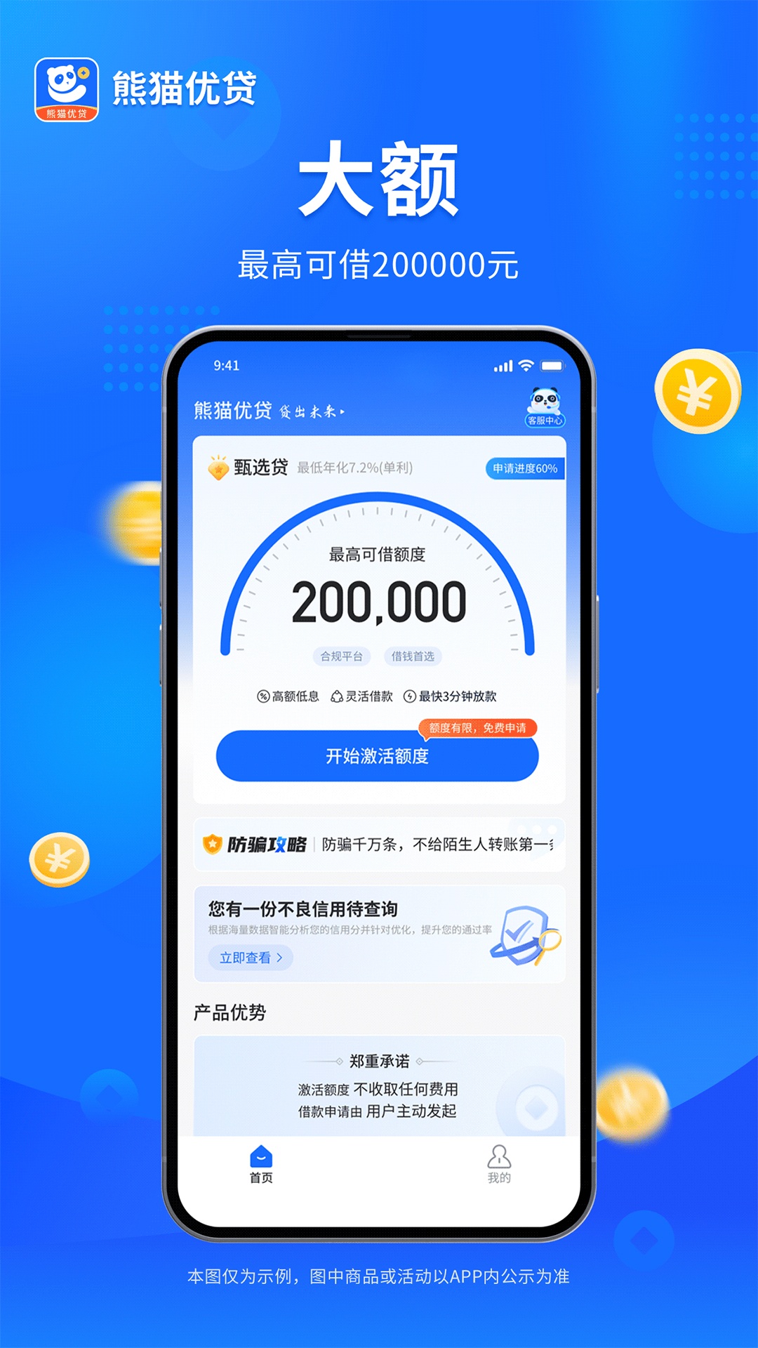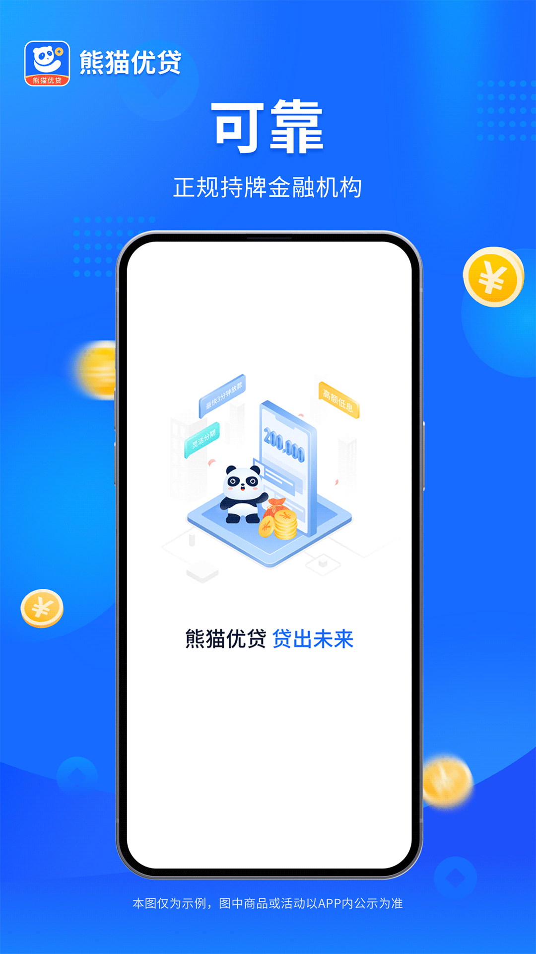 熊猫优贷是一款高额低息、无抵押的综合类信用贷款服务平台,专注为个人和小微企业主提供即时到账的贷款服务。基于大数据智能决策和专业风控对借款人进行整体信用评估,授信额度最高可达20万元,最快3分钟放款!