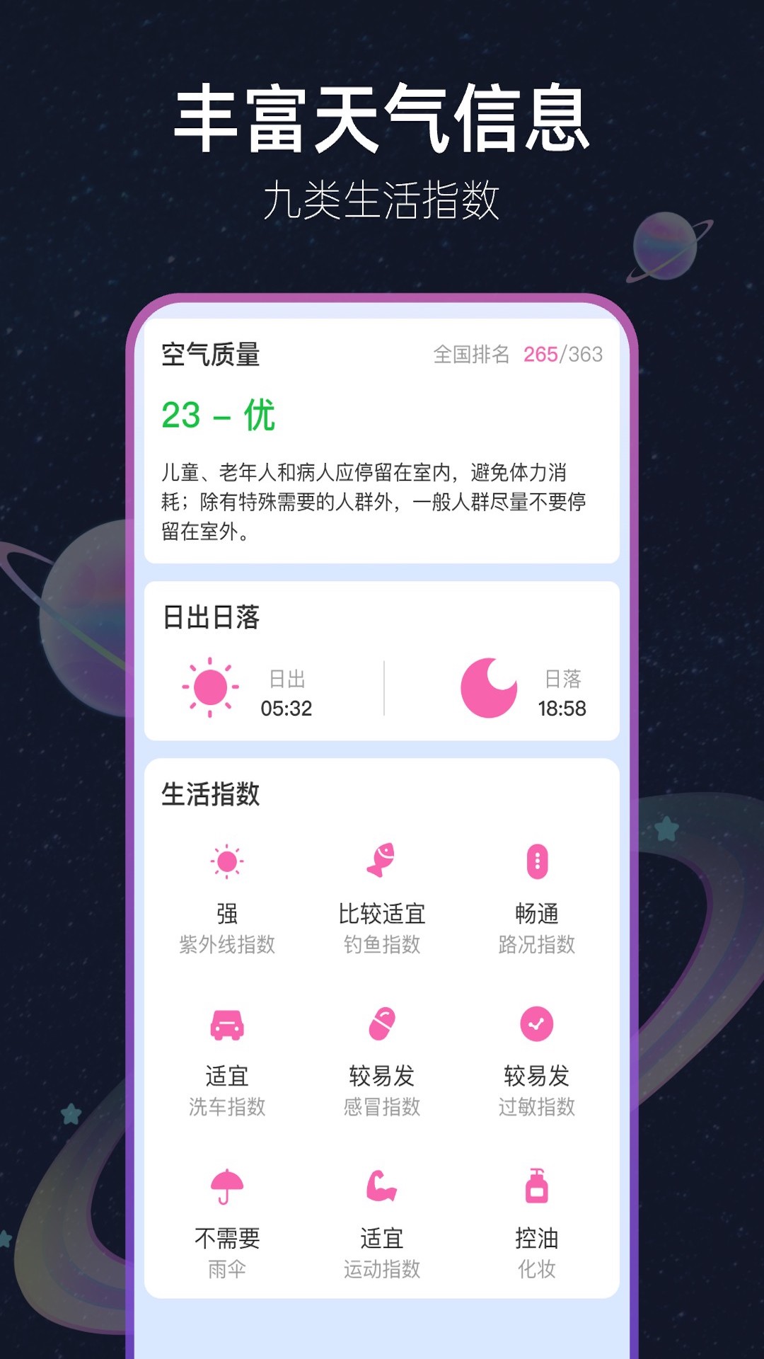 欢迎使用星云气象预报这个应用,帮助您规划天气生活的各方各面。