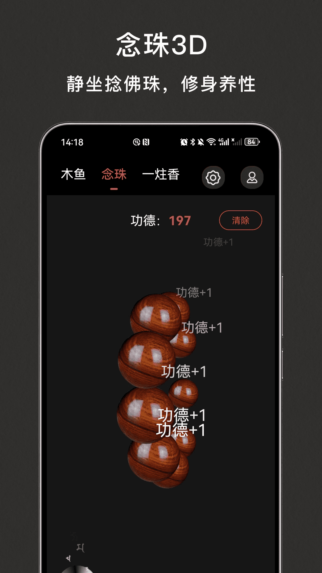 木鱼解压是一款融合电子木鱼、3D念珠、2D念珠与一炷香元素的解压应用。在这个喧嚣的世界中,我们为您提供一片宁静的天地,让您在敲击电子木鱼、拨动念珠的同时,点燃心灵的一炷香,释放压力,舒缓心情。