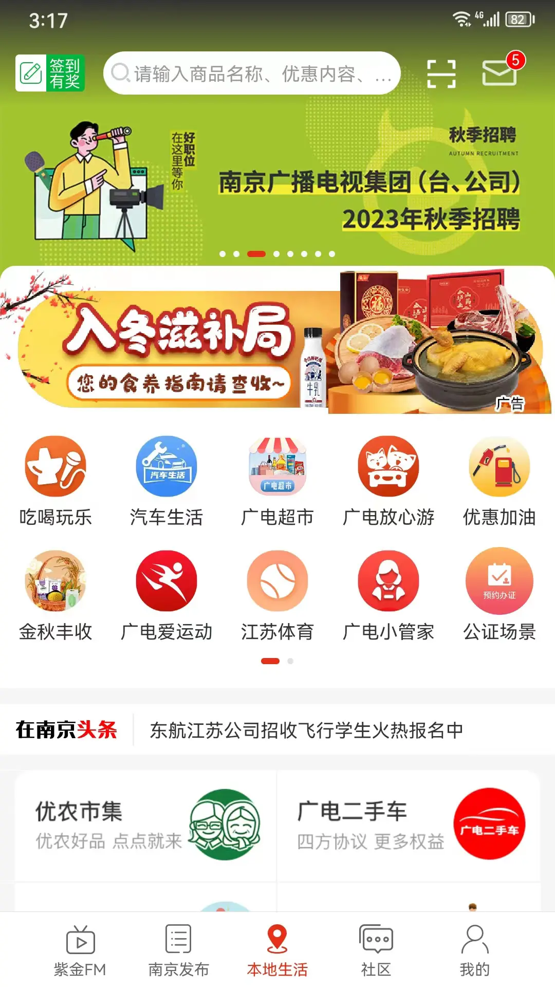 『在南京』APP是由南京广电集团的控股合资企业——南京广电猫猫新媒体有限公司研发出的媒体融合服务平台,集资讯、广播、视频、社区、团购、电商、拍卖等功能于一身,为市民带来“时尚、实用、实惠”的产品和服务,为商家带来多种宣传解决方案的同时有效创新广播盈利模式。基于『在南京』的探索实践,广电猫猫通过“中央厨房+本地团队”将“在城市”媒体融合解决方案推广全国多个省份,因地制宜帮助多个兄弟城市电台实现了媒体融合工作的有效推进,并荣获“2016中国广播创新融合十佳案例”。