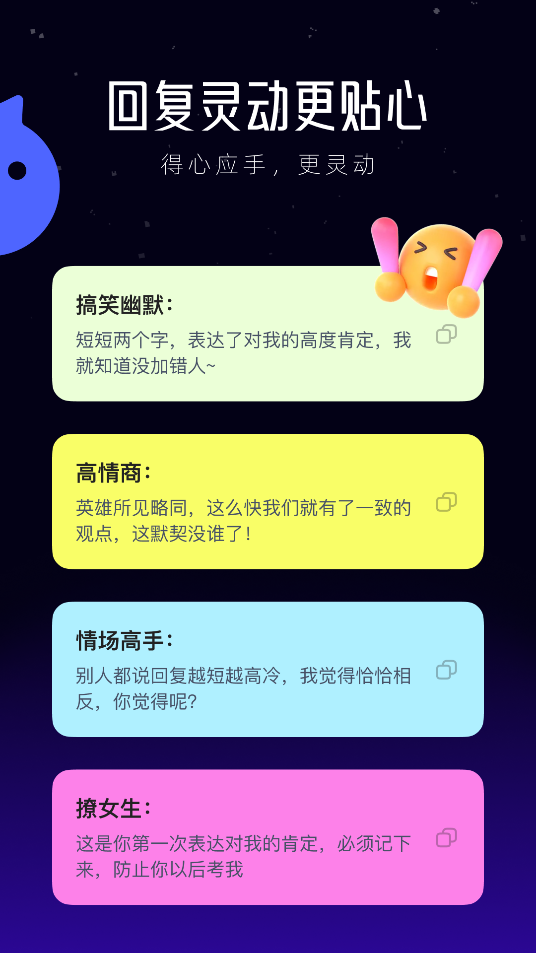 Lovetips旨在提高沟通的质量,使每一次对话都变得更加流畅和愉悦。在日常的交流里,不管是分享想法还是感受,又或者是面临可能出现的误解与分歧之时,Lovetips都能够为你提供切实可用的建议,助力减少沟通方面的阻碍。它通过促使人们更好地理解彼此的需求和立场,致力于让每一次的交流都更和谐、更具意义,从而避免那些不必要的误会和矛盾。