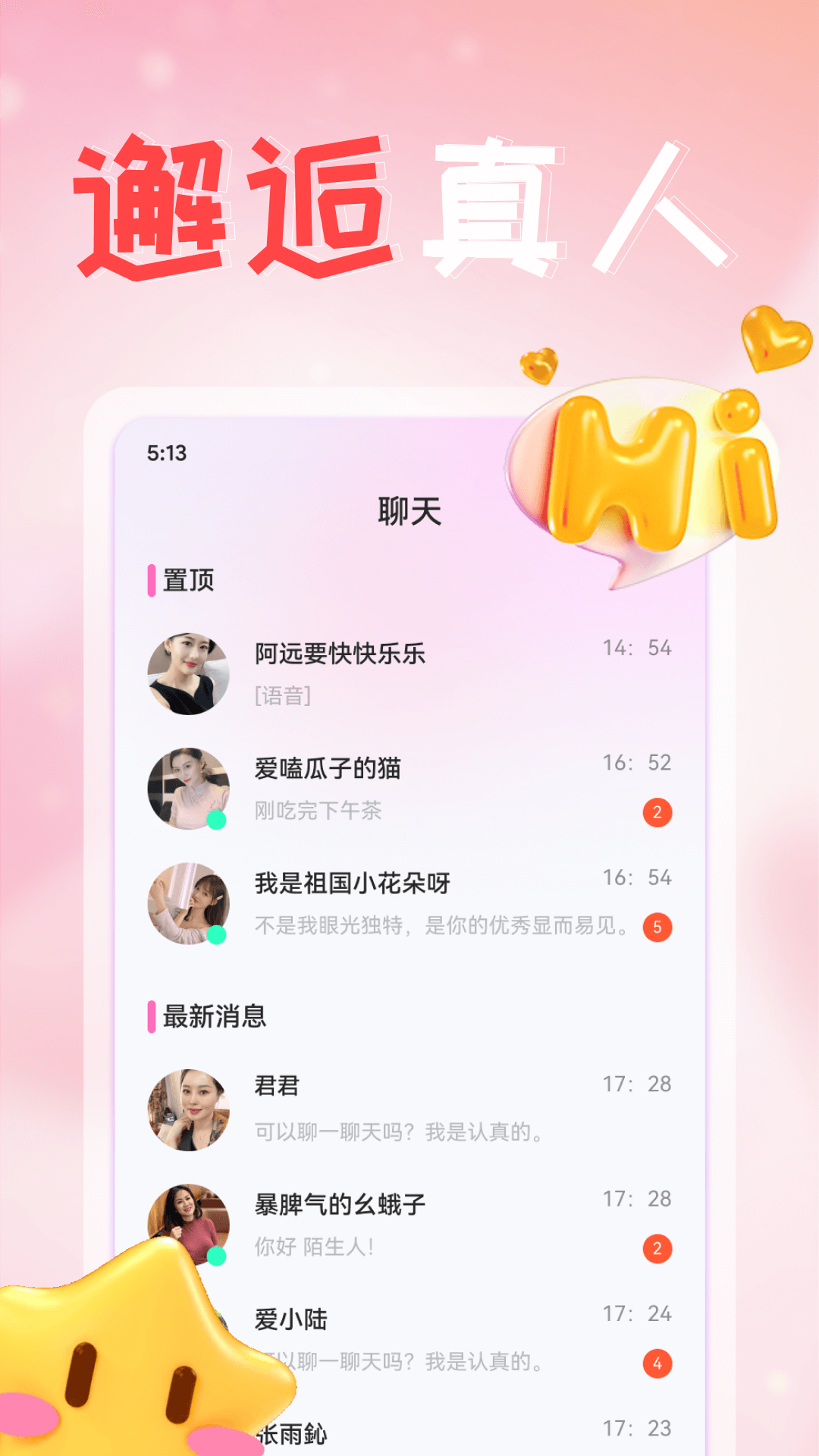 3. 真人认证:采用权威的AI算法,再加上人工审核,能够高效地过滤掉虚假异性,为你提供真实可靠的交友环境。