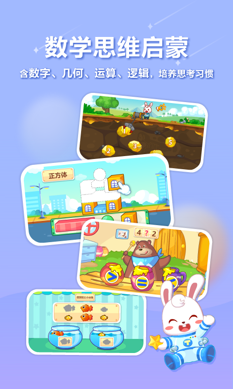 该应用精心筛选出识字、拼音、思维、英语等多个重要的学习领域,然后借助鲜活生动的动画以及充满趣味的互动游戏,把知识巧妙地融入其中,从而让学习变得妙趣横生。在兔小贝app里,孩子们能够在趣味十足的汉字游戏的引领下,深入探究汉字的结构与含义,逐步丰富自己的词汇储备;借助欢快的英语儿歌和模拟对话情景,孩子们能够培育英语语感,增强听说能力,为日后的英语学习筑牢根基;透过趣味数学游戏,孩子们能够学到基础的数学运算以及逻辑思维知识,从而养成解决问题的能力;在拼音学习板块,孩子们能够凭借反复的发音练习与拼写游戏,夯实拼音知识,提高阅读水平。