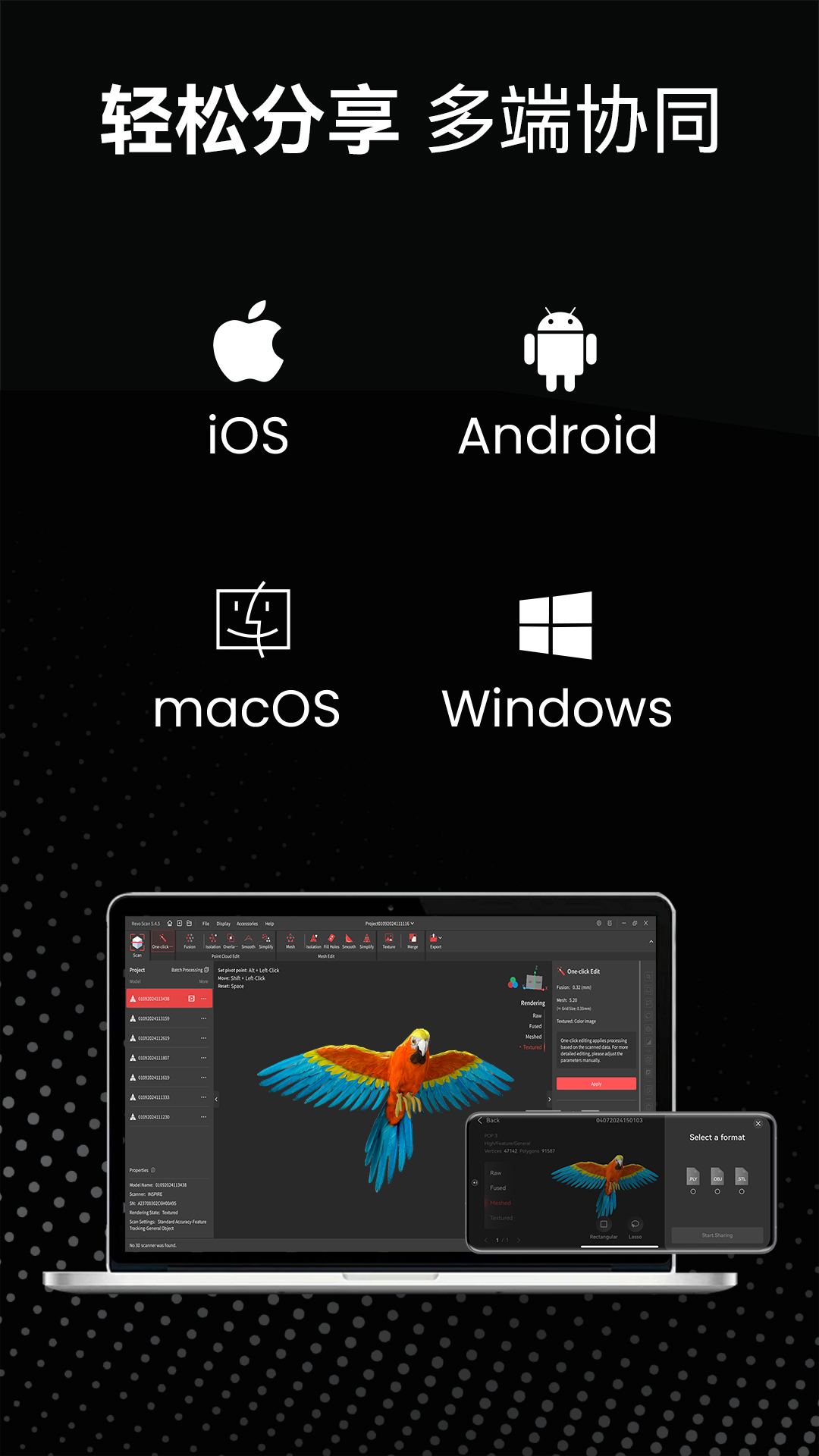 利用Revo Scan,您可以扫描生活中形状复杂的物体、微小型物体、大型物体以及彩色物体等,而且还能够进行人体和面部的扫描。这款3D扫描软件会自动处理扫描后的3D数据,生成高精度的3D模型,并且支持把3D模型导出为OBJ、STL、PLY这三种模型格式。不管是想要将3D创意设计变为现实的艺术家,还是期望创建原型的工程师,Revo Scan都能给予快速又流畅的扫描体验。Revo Scan这款3D扫描软件,是扫描现实物体不可或缺的3D扫描工具。
