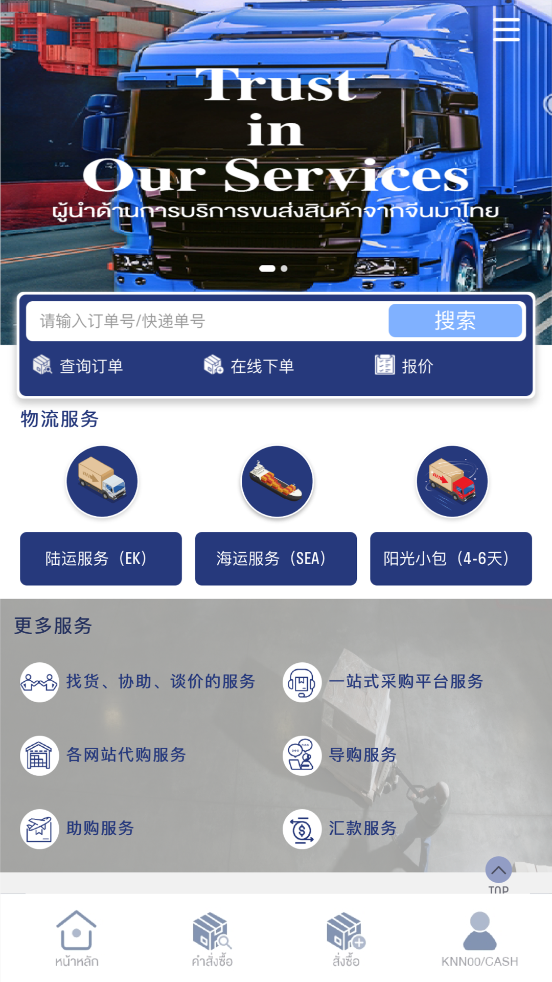 CTW CARGO中泰物流行业领导人,提供陆运(EK)和海运(SEA)的运输服务,以及许多附加增值服务。在APP方面可以查询运输状态,也可用于各种贸易方面,这是您中泰贸易和运输方便的好帮手 (CTW CARGO, The leader in transportation services from China to Thailand. Provide transportation services both by land (EK) and by ship (SEA). With many other additional services. The application can check the status of transportation. And perform many other transactions meet business needs.)