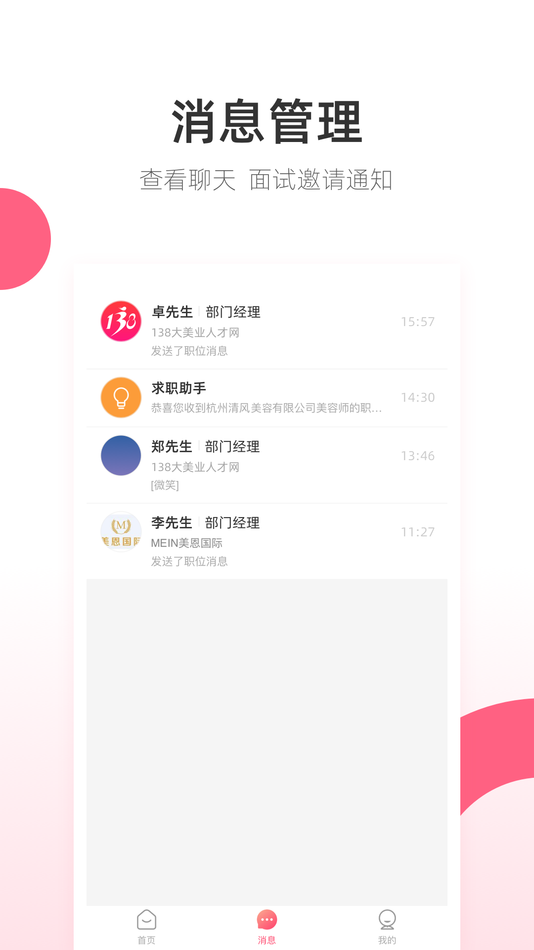 【在线求职】可以在线与招聘雇主聊工作;