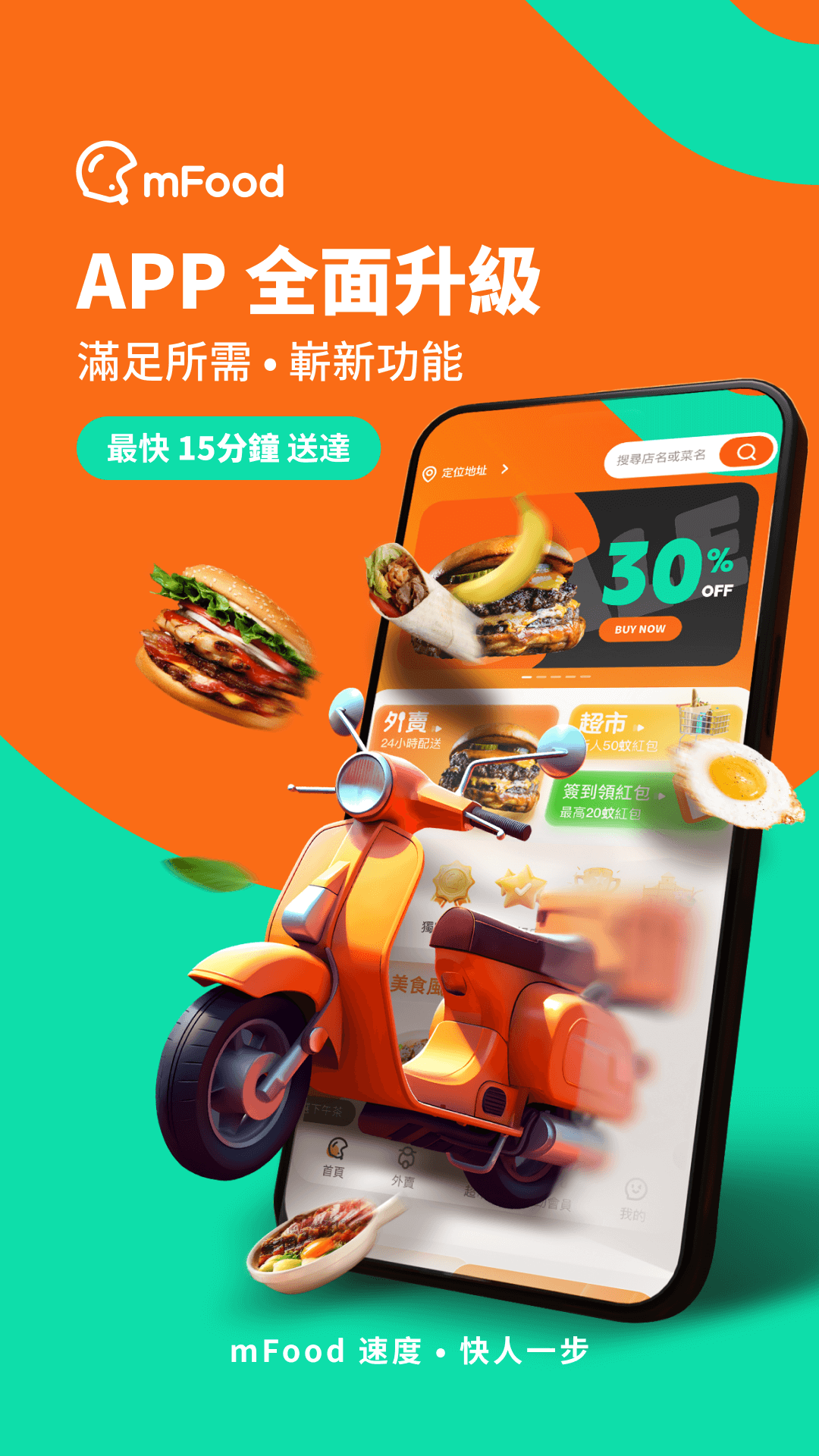 【mFood外賣】 1、秋日勁滋味 逢星期三 領78減30大額紅包 2、中銀淘寶卡買6張勁爆券,僅需14.9! 3、爆筍星期四 美食限時 9蚊9 4、聚好星期日 披薩炸雞免費食 【mFood超市】 來來、新苗超市、DONKI、CCK品牌日拎30蚊大額優惠券