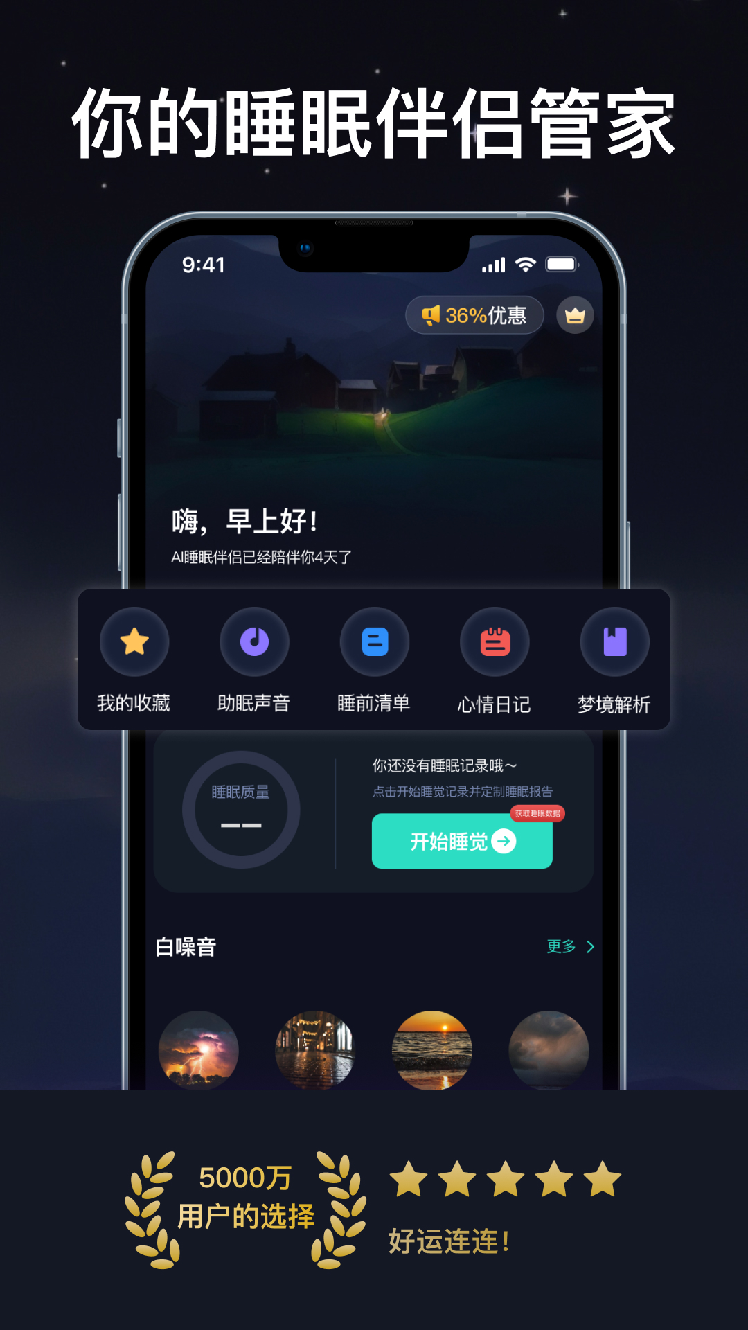 睡眠AI伴侣,您身边的睡眠管家,为您定制专属健康助眠方案。