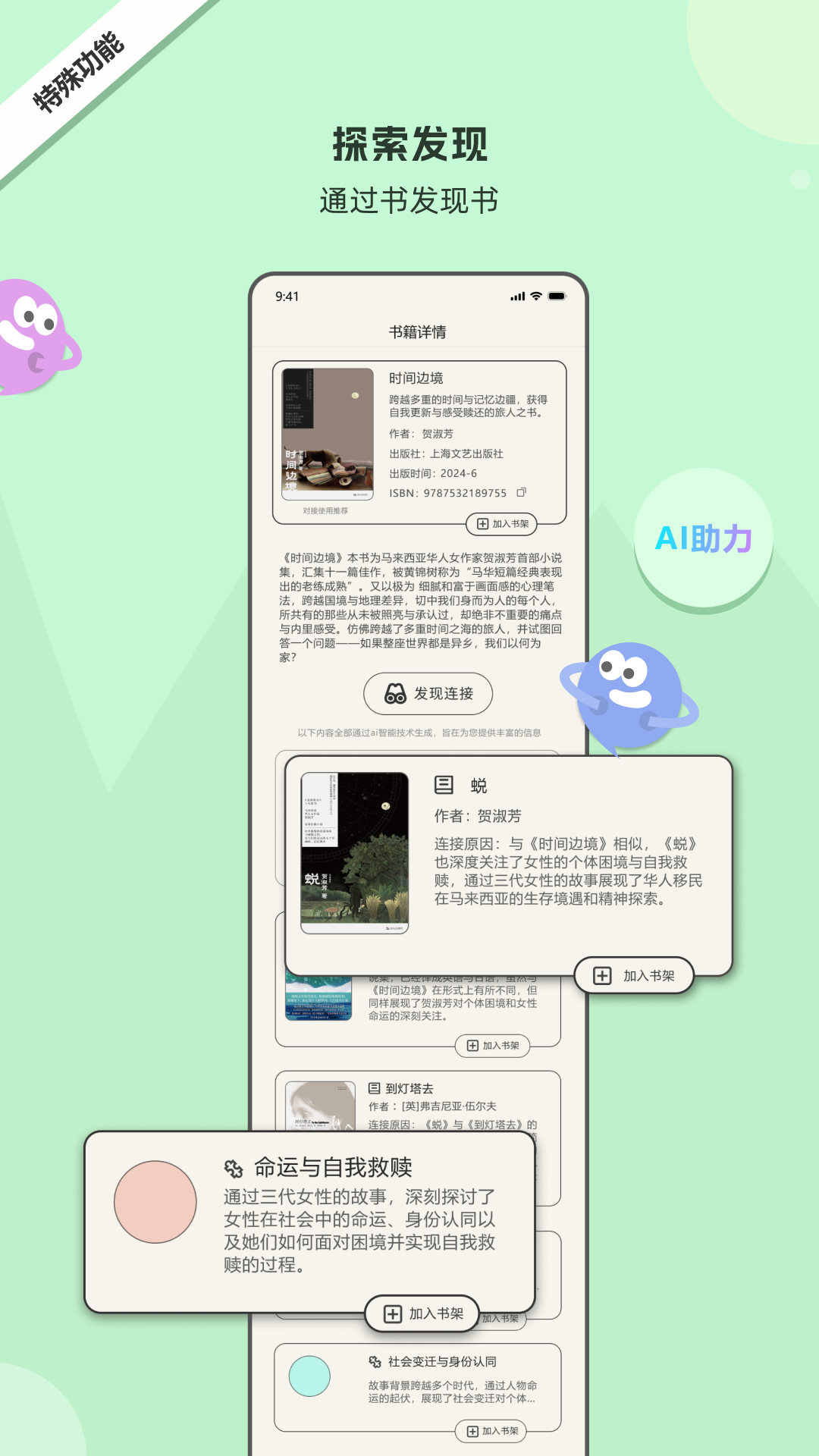 - 能够协助用户从一本书籍出发,发现更多的书籍,并且深入探索这些书籍之间存在的相关性,这有助于用户拓展阅读范围,构建更系统的知识体系。