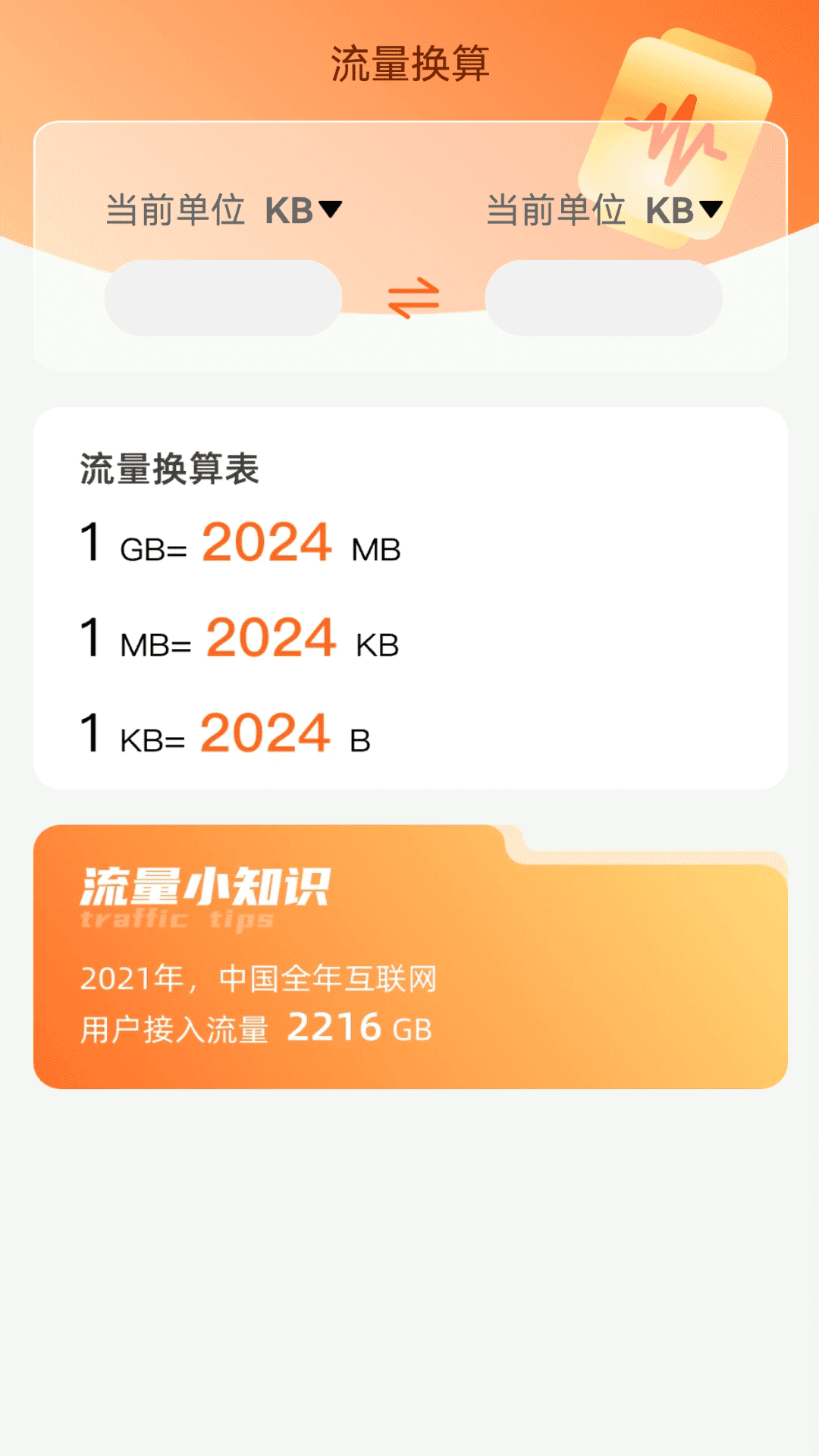 乾硕流量王具备的流量换算功能,能让您毫不费力地进行不同单位流量间的转换。不管是kb、mb还是b,只要输入现有的流量单位数值,就能迅速转换为您想要的单位。
