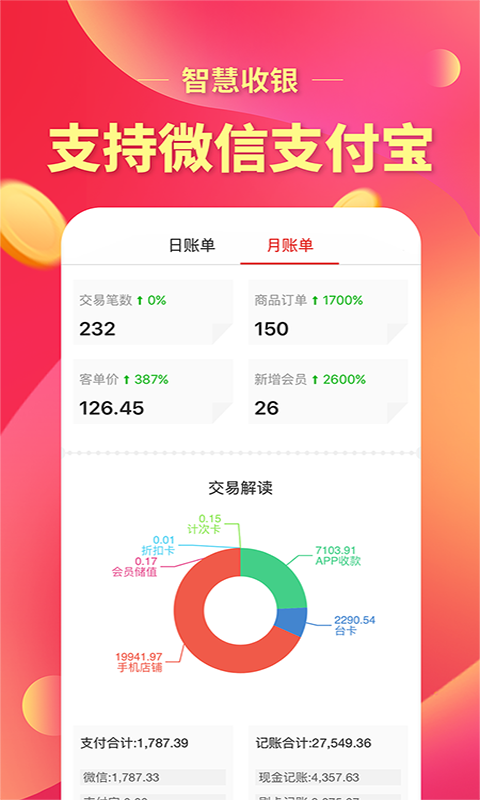 提供多种便捷的支付方式,在软硬件收银方面支持微信和支付宝等。