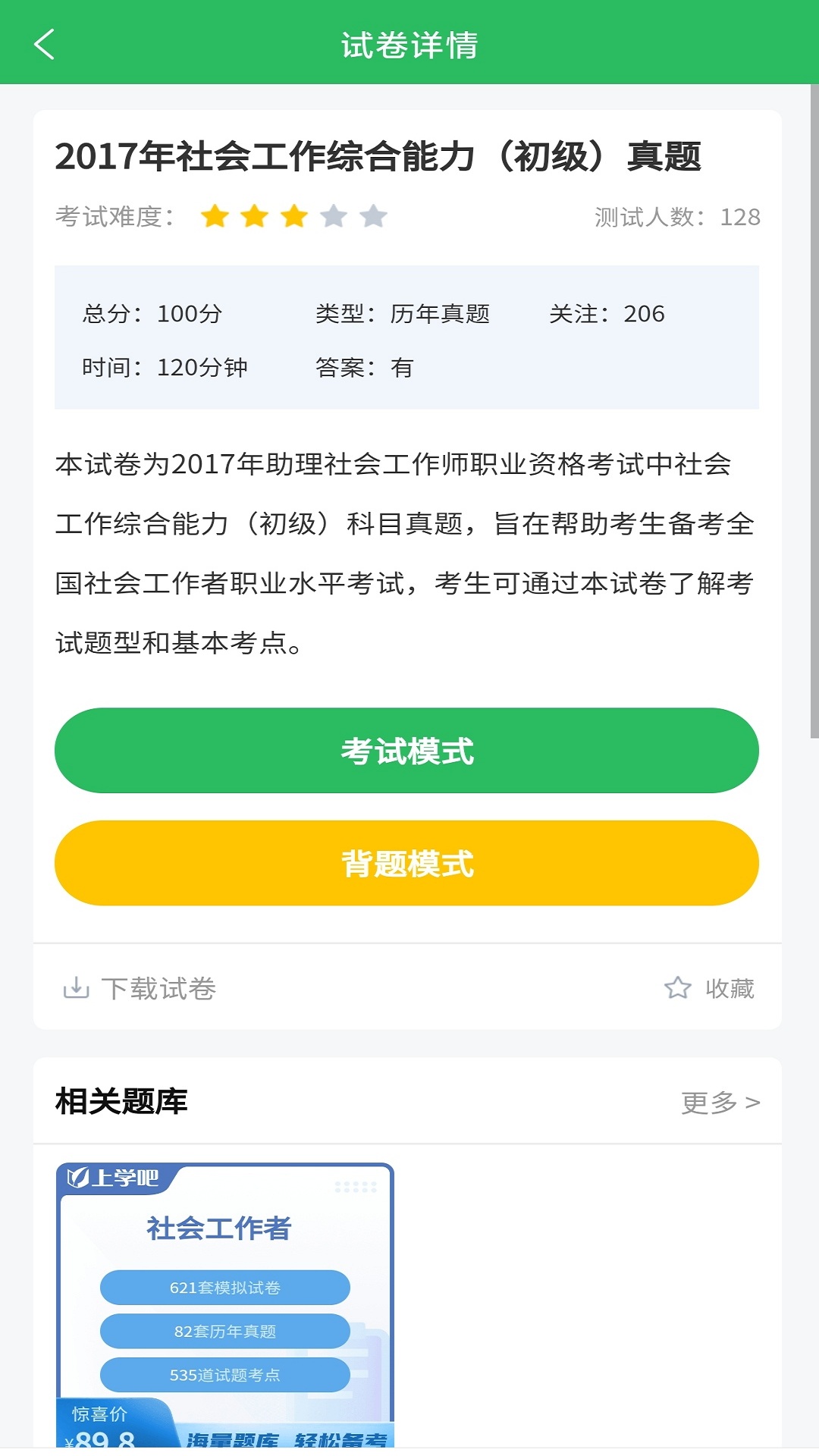 上学吧社工师考试题库不仅拥有完整的社工师考试题库、丰富的练习与做题模式,还设置了社工师考试查询入口,并提供全面的社工师考试大纲!
