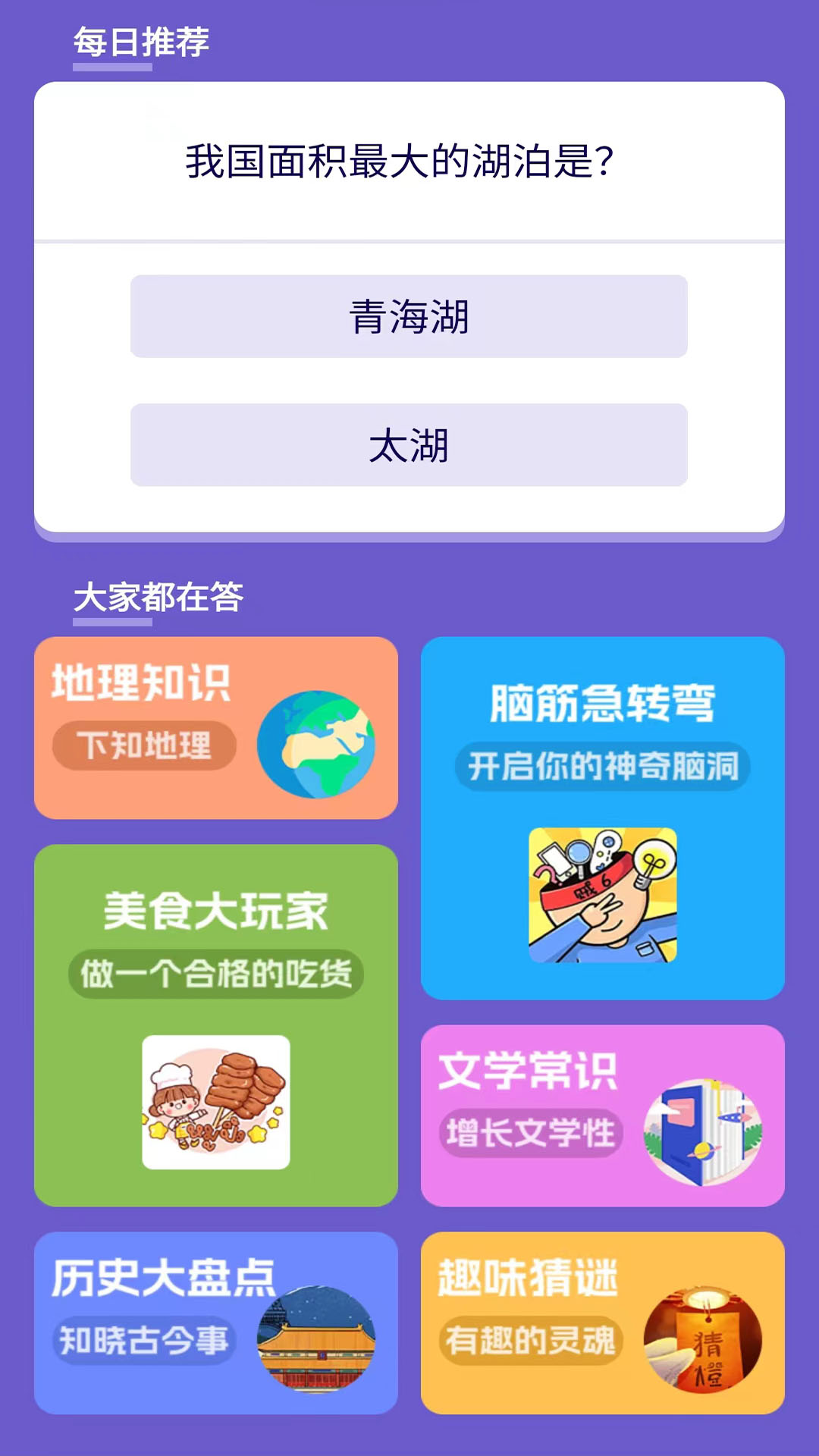 这里的内容超级丰富哦,天文地理方面的知识应有尽有,科学艺术领域的内容也涵盖其中,风俗美食的知识也不少,生活常识之类的更是不在话下。如果你玩那些飞机大炮之类的游戏已经玩腻了的话,不妨来试试这款答题软件吧。它可以让你在放松心情、调剂情绪的同时,还能增长不少课余知识呢。