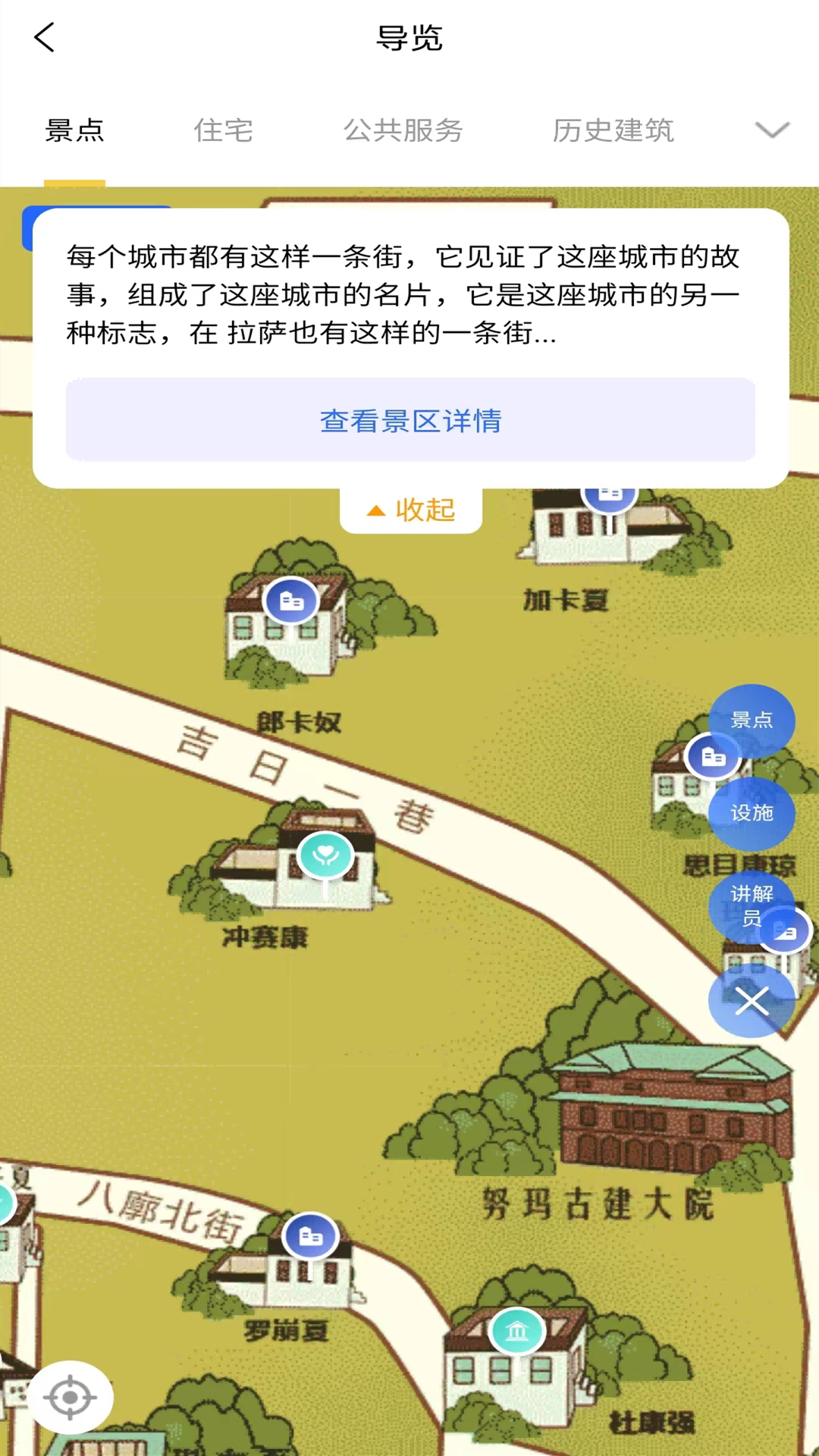 而且语音讲解各个历史遗迹内容,以便快速的了解八廓古城。