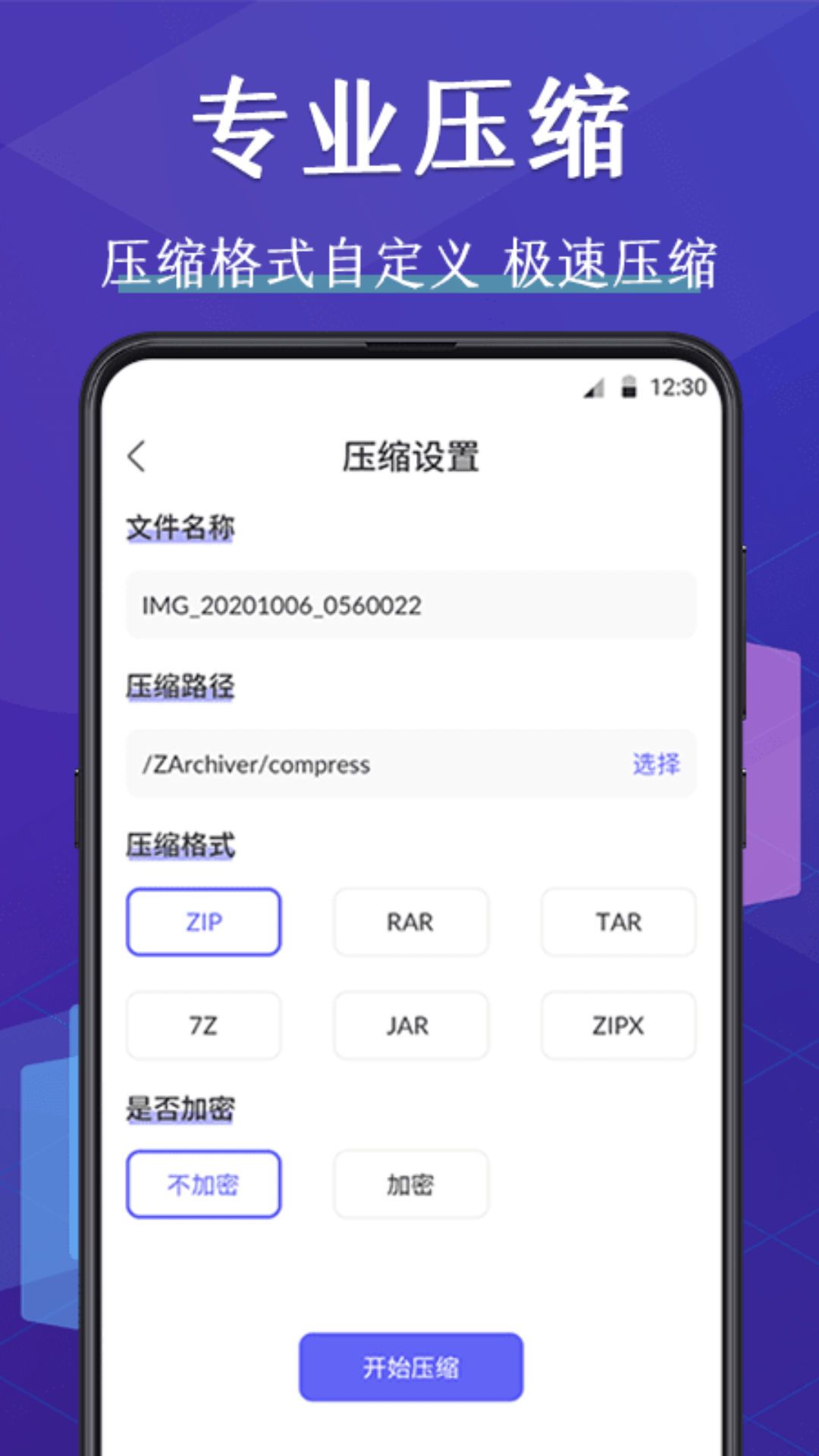 在压缩文件方面,它能够将您的文件压缩成ZIP格式,还支持压缩为7z、RAR、ZIPX、TAR等多种格式。