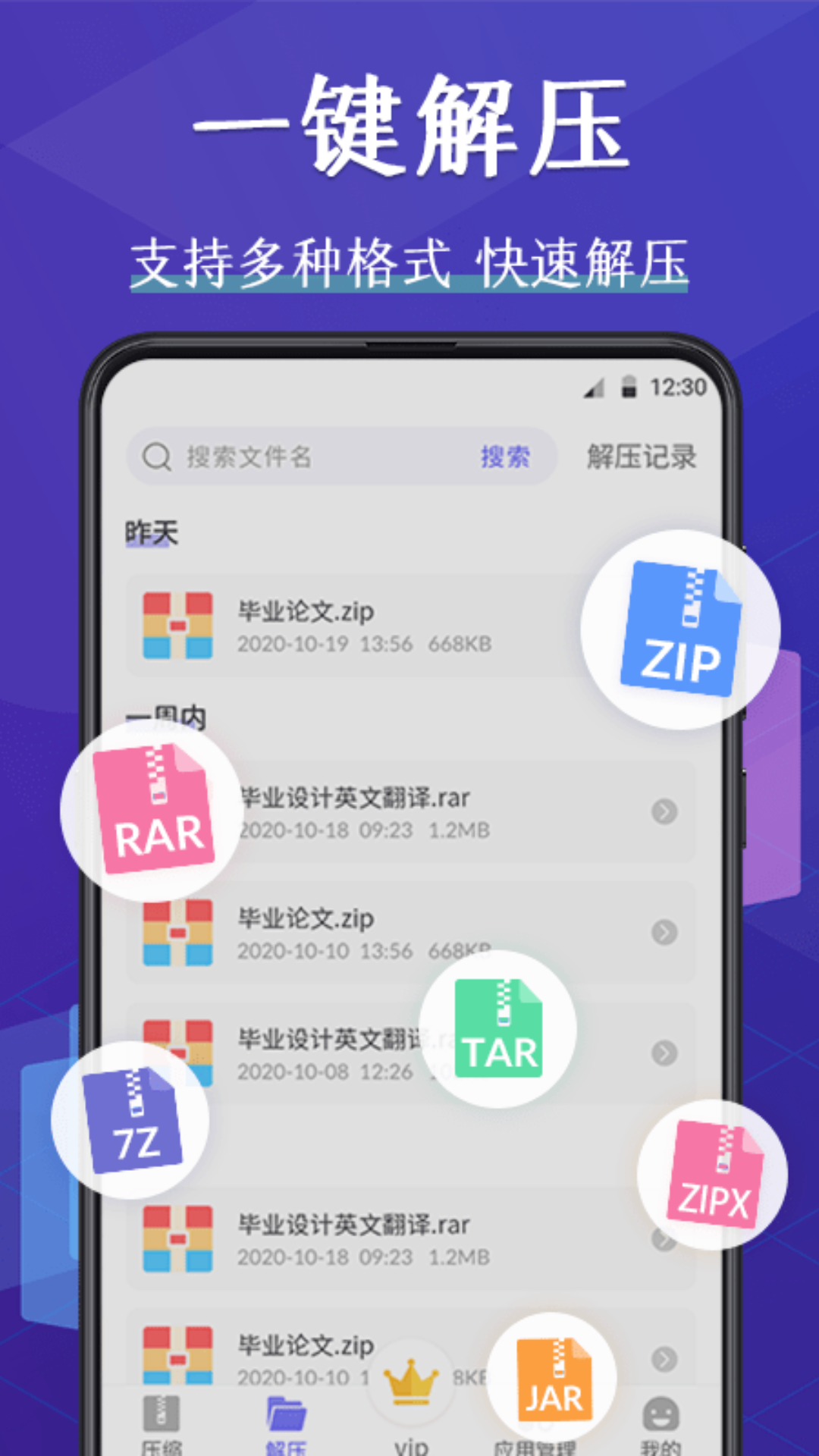 解压功能也十分出色,可解压Zip、7z、RAR、ZIPX、TAR、JAR等多种文件格式,甚至能对加密文件进行解压。它支持ZIP、RAR、7Z、TAR、ZIPX、GZIP、BZIP等多种压缩文件格式的解压,是非常实用高效的手机解压缩与文件管理工具。