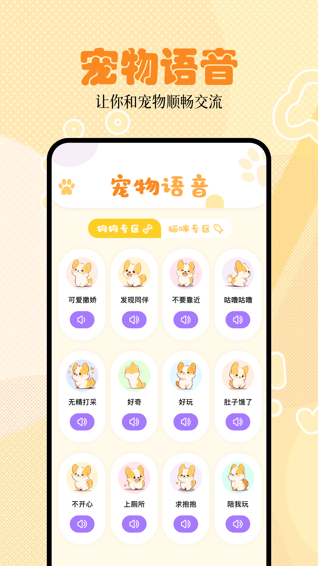 《猫咪请就位》是一款专为喜爱猫狗等小动物的人士开发的动物语言交流器,深受宠物达人们的喜爱。它堪称集狗狗与猫咪交流、狗语和猫语翻译于一身的动物叫声语言管家,作为人狗猫交流翻译器,它能够让主人与动物之间的关系更加亲密哦。