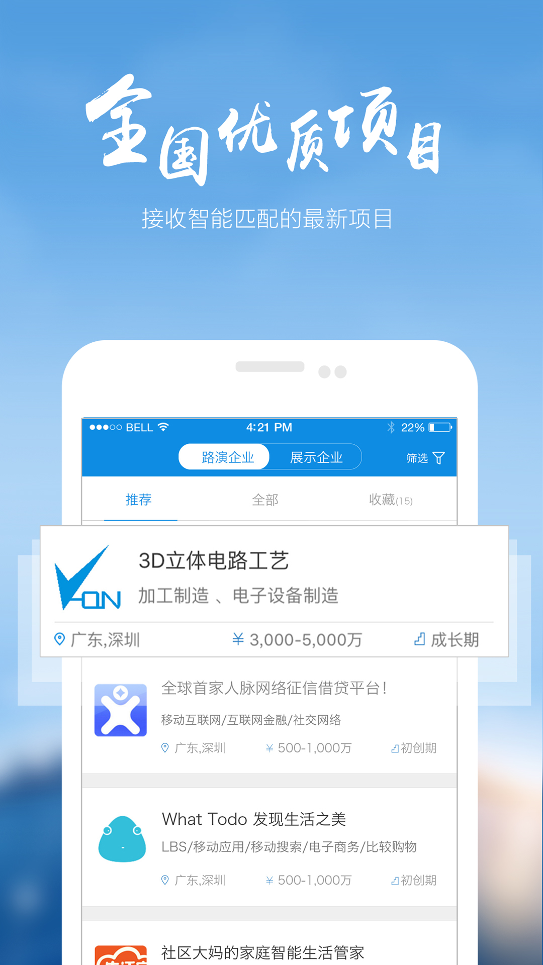 - 投资人看项目:投资人能够观看企业路演,详细浏览来自全国各地的科技项目情况。