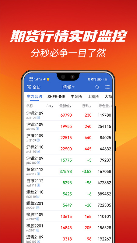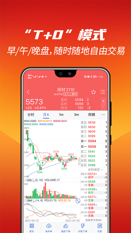 3. 期货交易:可进行手机在线交易,支持“T + 0”双向操作(买涨买跌),出入金速度快,交易无延迟,便捷高效,涵盖金属、能源、指数、农产品等商品期货、期权交易。
