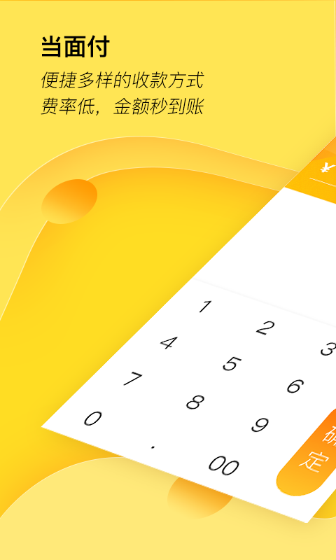 便捷多样的收款方式,费率低,金额秒到账。