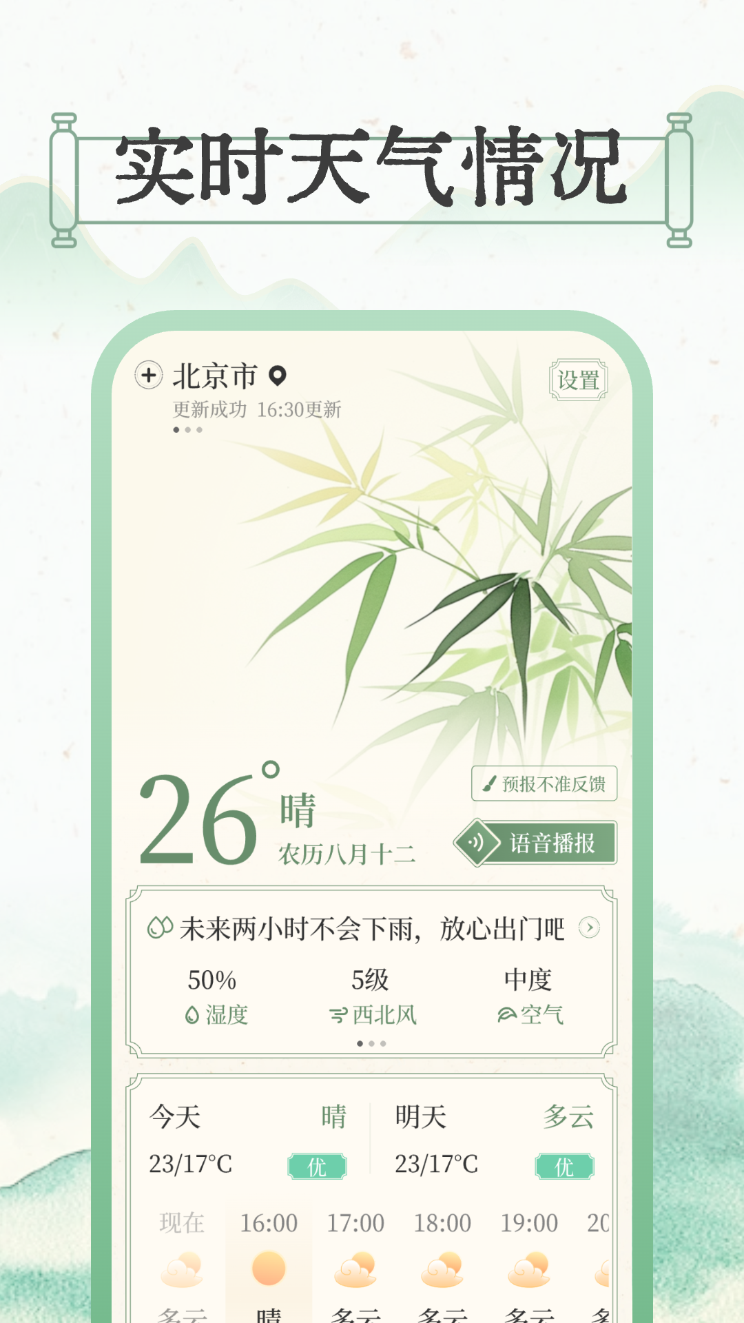 每日24小时预报:无论是今天还是明天,您都可以查看逐小时的天气变化,帮助您更好地计划日常活动。