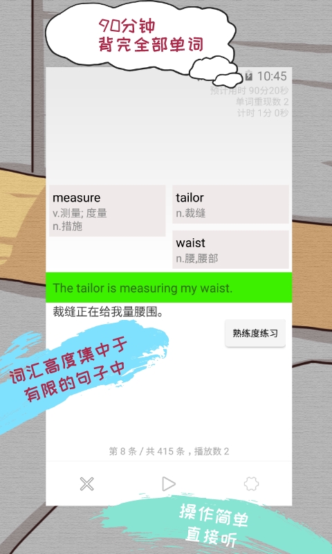 优点英语App为词汇学习提供了三种学习情景,能确保词汇学习的高效性,无论多么抽象、难记的单词,都能让学习者达到像对“good”这个单词一样的熟练程度。