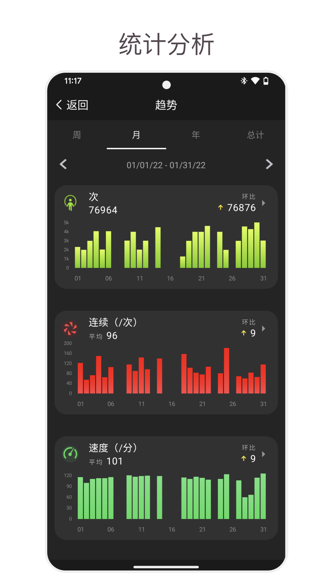 3. **跳绳速度统计**:帮助您了解跳绳的速度快慢。