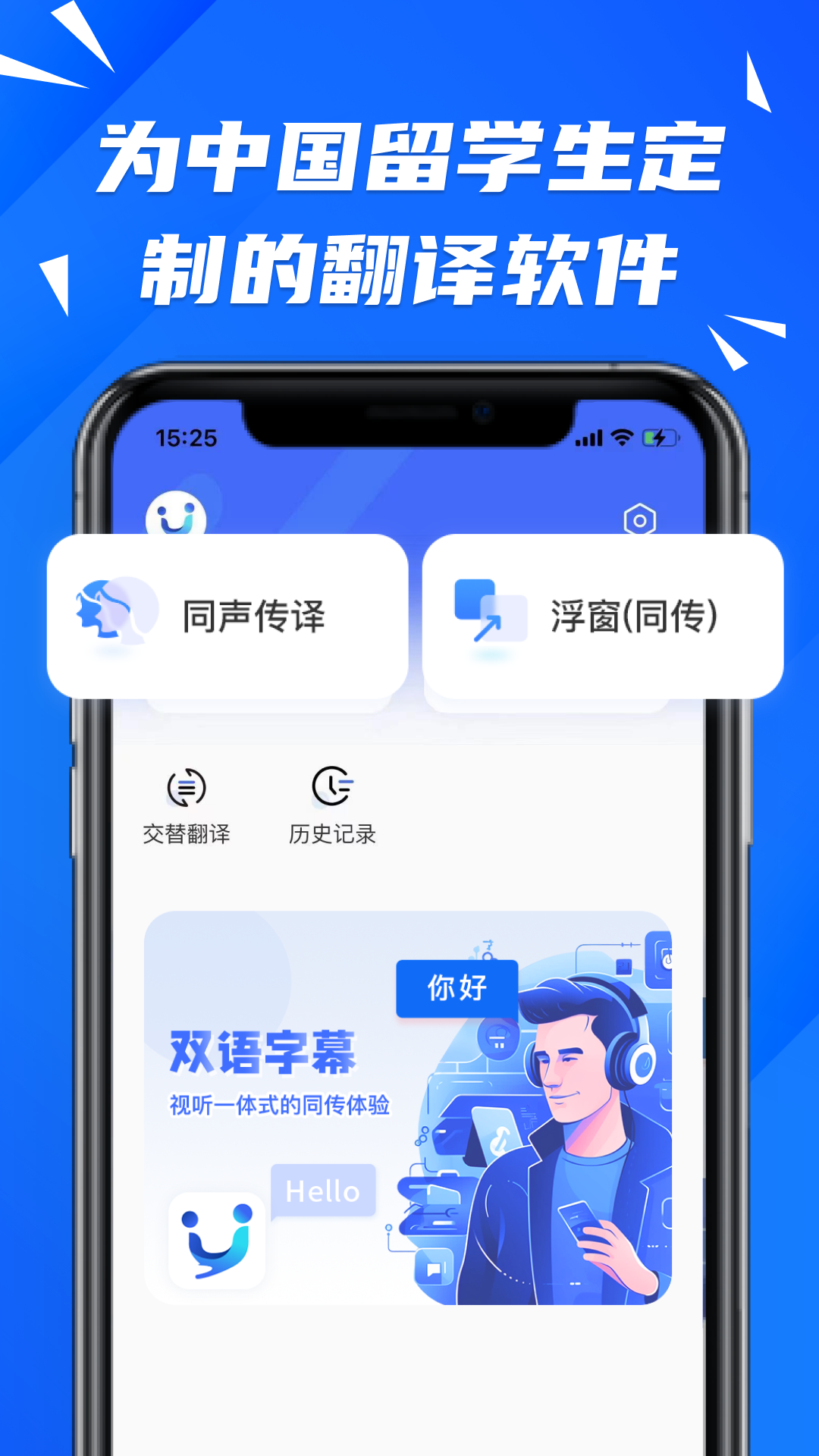- 同传语音播报便捷收听:只需使用普通蓝牙耳机,就能收听目标语言的语音播报。