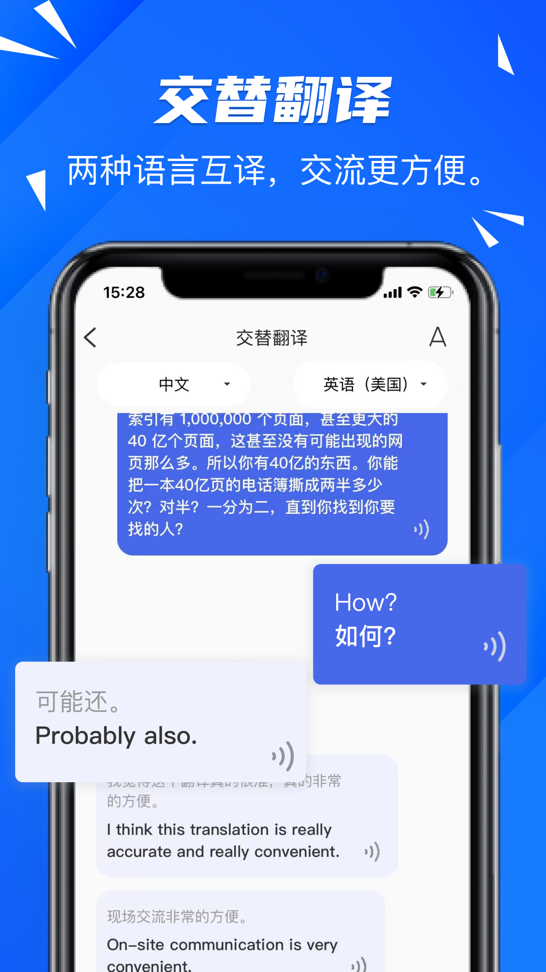 - 实时语音交替翻译:能够在两种语言之间进行实时的语音交替翻译操作。